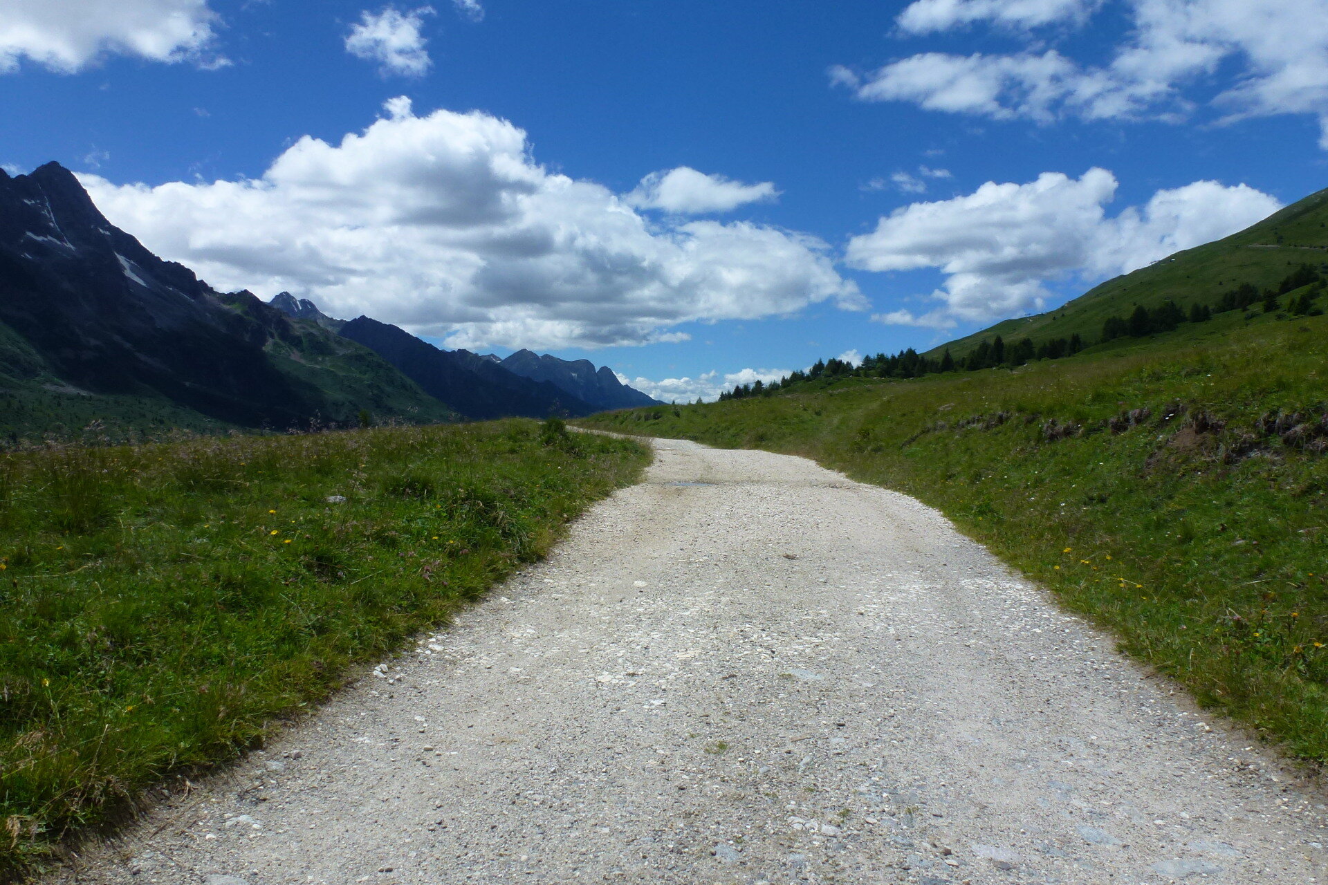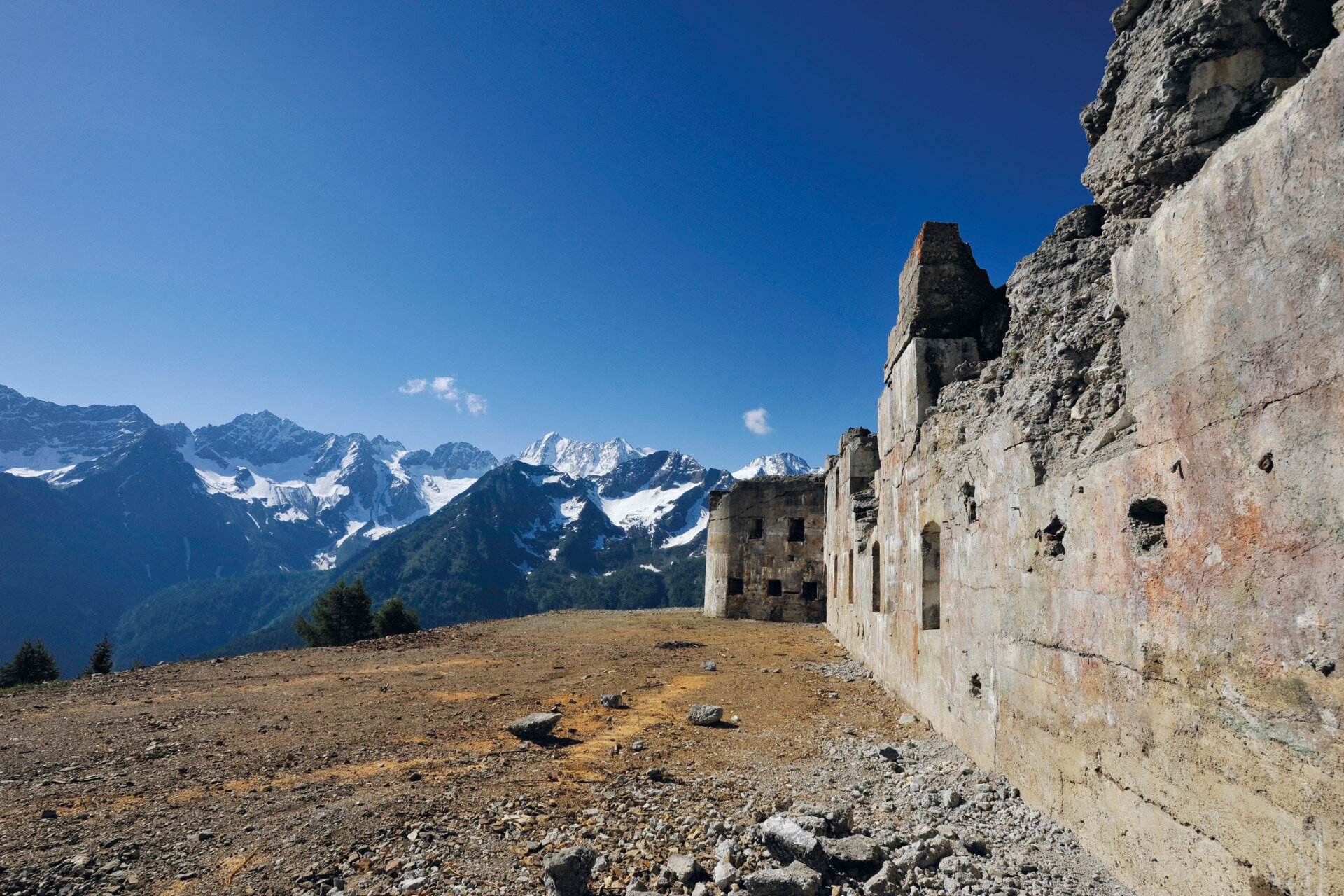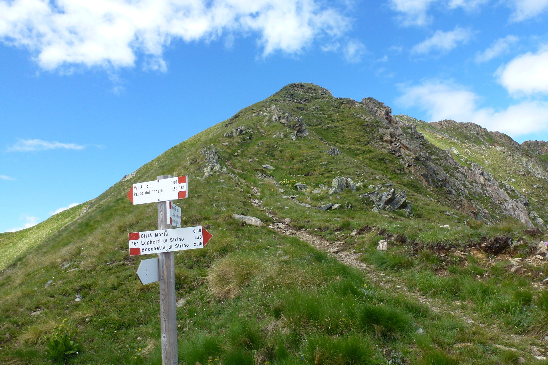 Startpunkt ist das charakteristische Ospizio S. Bartolomeo (1.971m) am Passo Tonale. Folge der Schotterstraße zur Malga Valbiolo, bis du an der Wegkreuzung (2.042m) ankommst, und nimm den SAT 161, der nach einer Reihe steiler Kehren zum Monte Tonale Orientale steigt. Folge dem Pfad, bis du einen deutlichen Grat erreichst, der dich zum höchsten Punkt (2.696m) führt. Gehe ein paar Minuten zurück, dann steige links hinab in Richtung des weiter unten liegenden Militärdorfes, bekannt als Città Morta (2.493m), wo noch die Ruinen des riesigen österreichischen Militärlagers zu sehen sind. Von hier nimm den SAT 137 hinab ins Val di Strino, bis du den SAT 160 (bekannt als Borzelait) kreuzst, der weiter abwärts über steile Rinnen in Richtung Malga Strino führt und die Ruinen des Forte Zaccarana (2.100m) erreicht, einst ein dominanter strategischer Punkt am Passo Tonale. Vom Fort folge dem einfachen Weg zurück nach Tonale und Ospizio S. Bartolomeo.