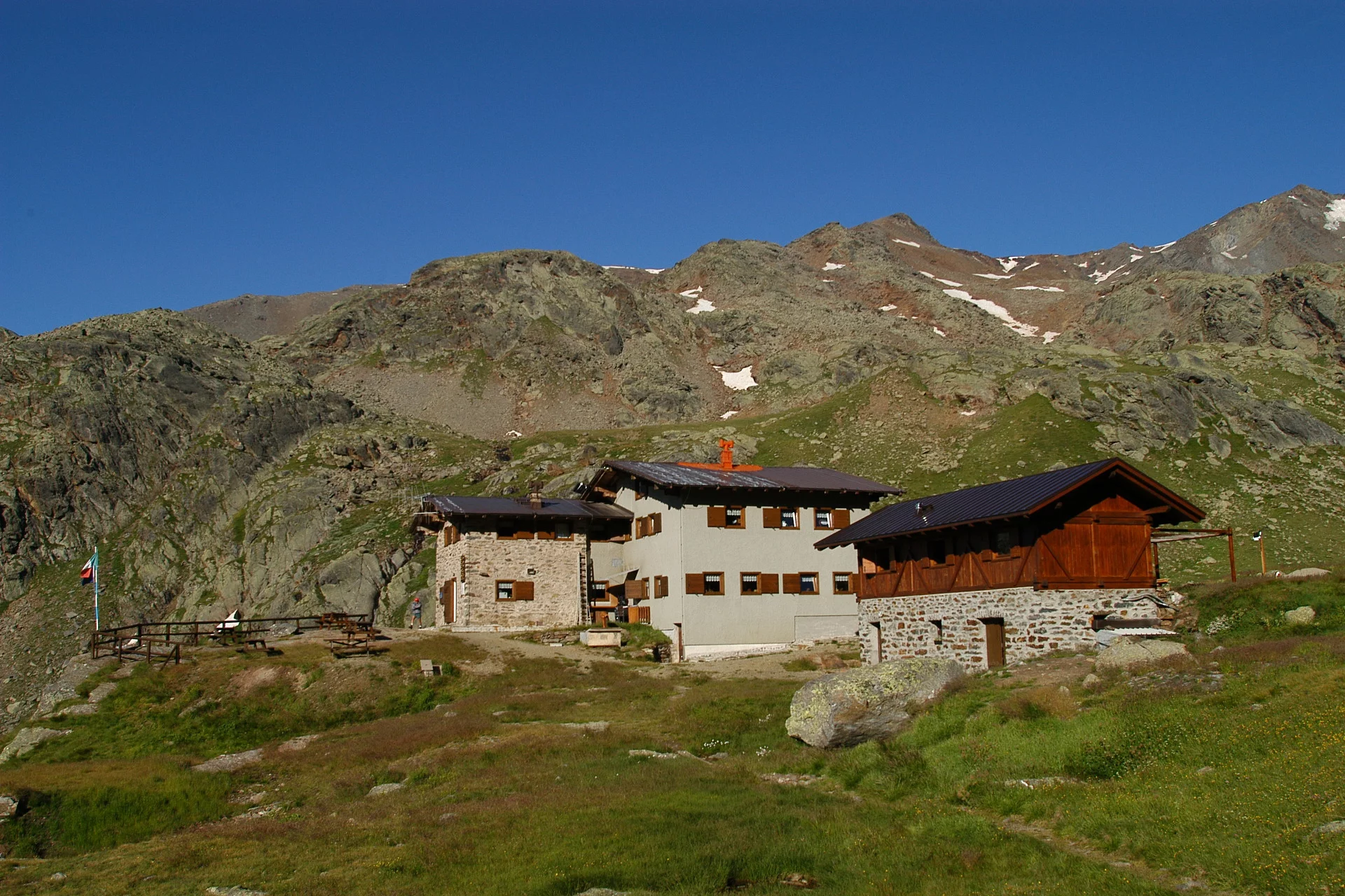 Die Schutzhütte Dorigoni befindet sich in einem Tal, das reich an Wasser, Wasserfällen, Seen, alpinen Wiesen und jahrhundertealten Lärchen ist. Sie liegt an der natürlichen Kreuzung von vier Tälern: Val di Rabbi, Val di Peio, Val Martello und Val d'Ultimo und dient als Stützpunkt für die Durchquerungen und Besteigungen der umliegenden Gipfel.