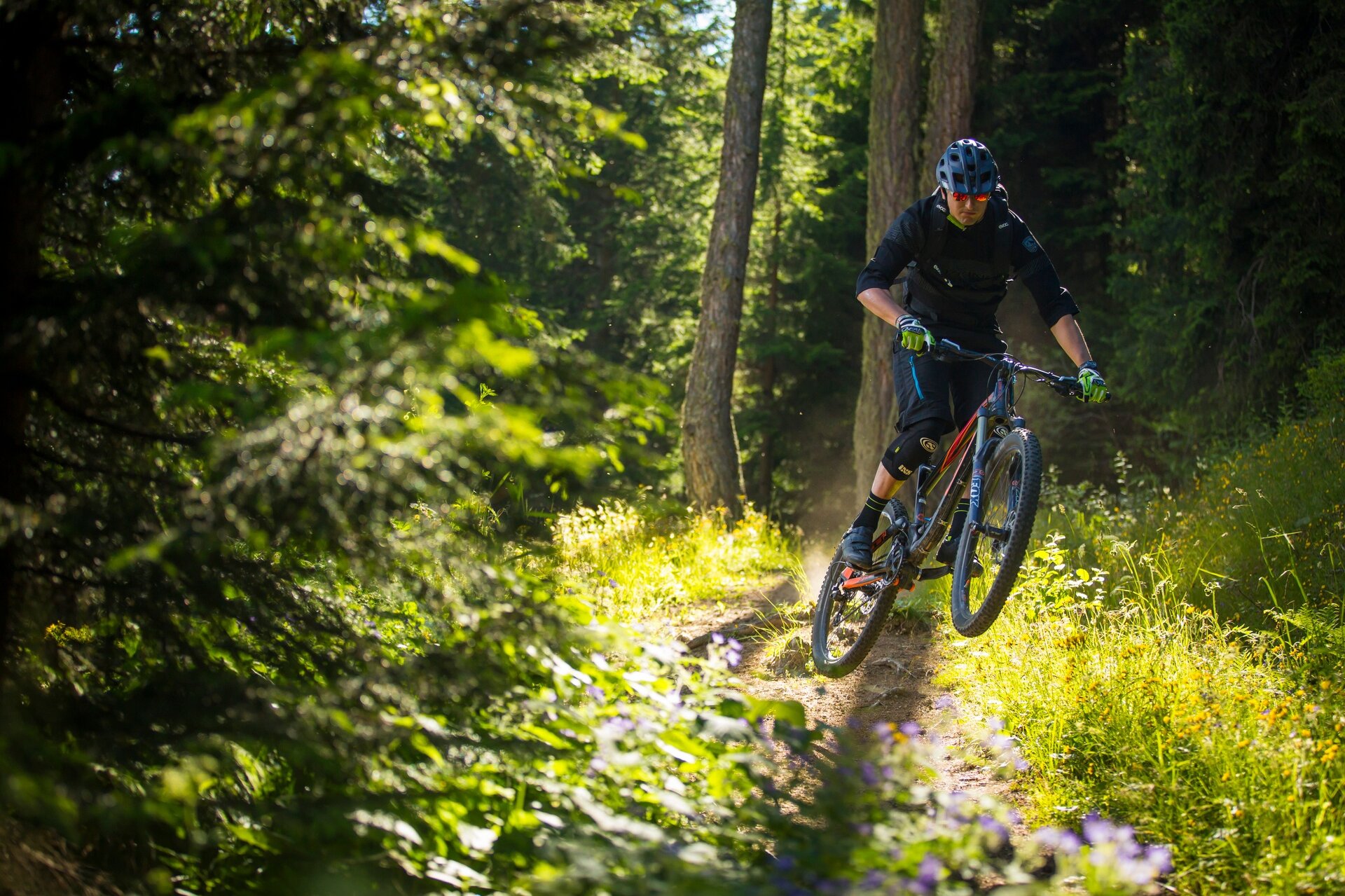 Unterhaltsame Abfahrt auf Singletrack vom Rifugio Solander nach Daolasa durch Wälder, Skipisten und das Zentrum von Folgarida.