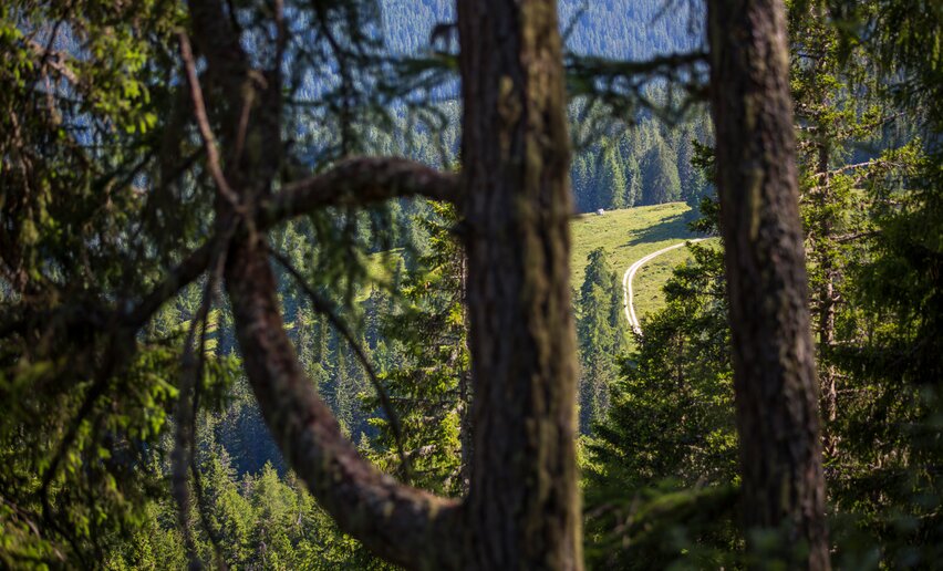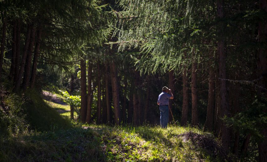 Die 'Laresi de la Tegia' sind jahrhundertealte Lärchen mit ganz besonderen Formen. In diese Gegenden stiegen unsere Bauern einst zur Heuernte hinauf, um im Schatten dieser imposanten Bäume Schutz zu suchen oder kleine Feuer unter ihren Stämmen zu entzünden. Der Wanderweg führt schließlich zum 'Bait del Germano', einer Biwakschachtel, die wie ein Hüter über unzählige Geschichten wacht.