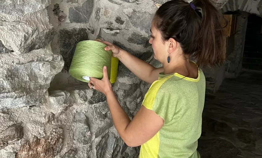 Die in der Strickerei La Lana Lunatica verarbeitete Wolle stammt von Schafen, die im Val di Pejo gezüchtet werden. Dank der Färbungen mit Zwiebelschalen, Flechten und anderen natürlichen Elementen sind die Stücke wirklich einzigartig.