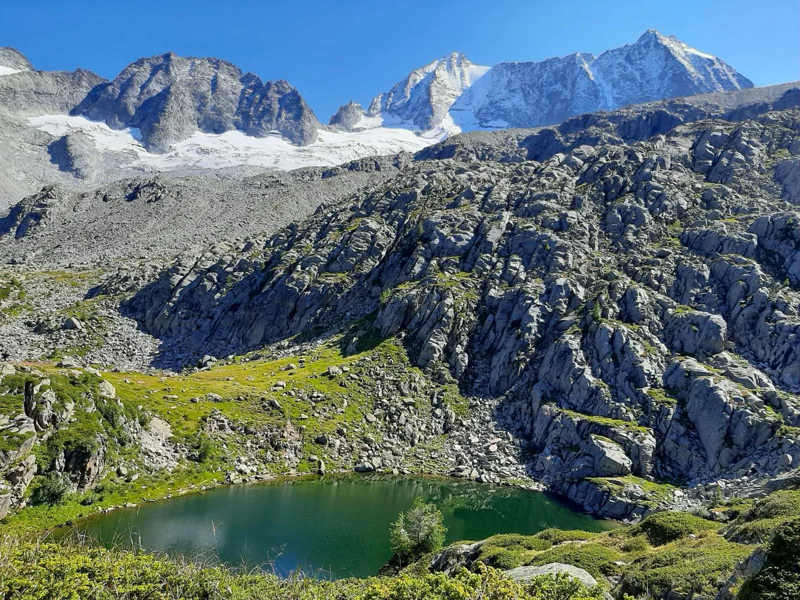The route continues on SAT 206, the "Sentiero dei Tedeschi", which ascends to the Vedretta della Presanella (2,650m) along the slopes reaching the glacier's edge. A location of great glacial interest. From here a descent towards the Lago Denza until reaching the refuge. It is possible to vary the return route by car without taking the same path. Take SAT 234, which climbs the large basin carved by rocks towards the Passo dei Pozzi Alti (2,650m), offering spectacular views towards Bernina and Vioz. Finally descend the north side, initially an open space then becoming quite shrubby, following an old mule track dating back to World War I that leads to the Pozzi Alti parking lot.