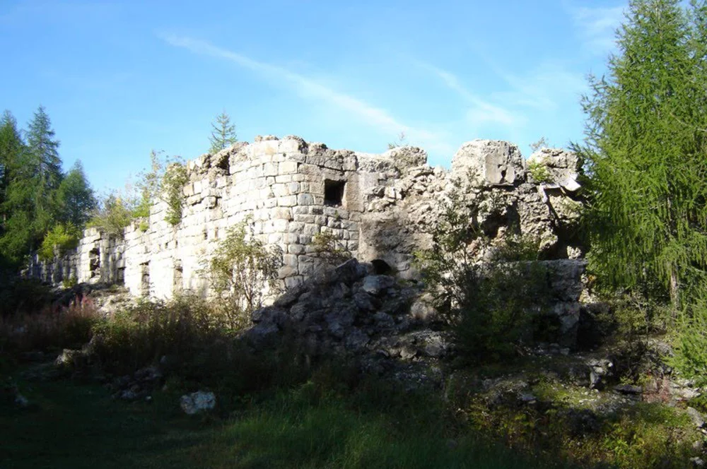 Arriving in Vermiglio follow directions for Velon. Just after Hotel Baita Velon take the dirt road towards the former Forte Pozzi Alti.