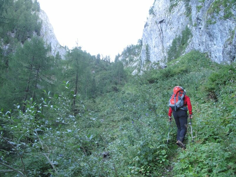 The path climbs mostly through the forest until reaching the high pastures and reaches the junction with path 308.