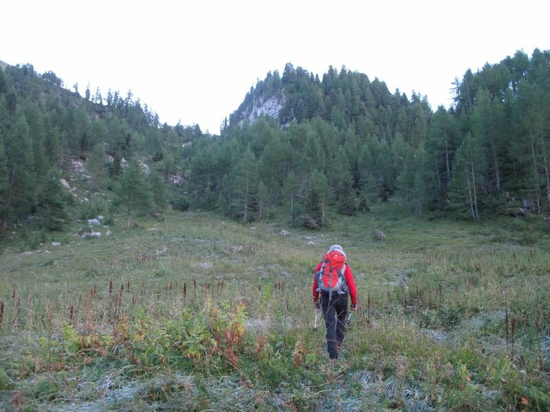 Slightly above, pass a few dozen meters from the hut called La Malgetta and continue straight ahead.