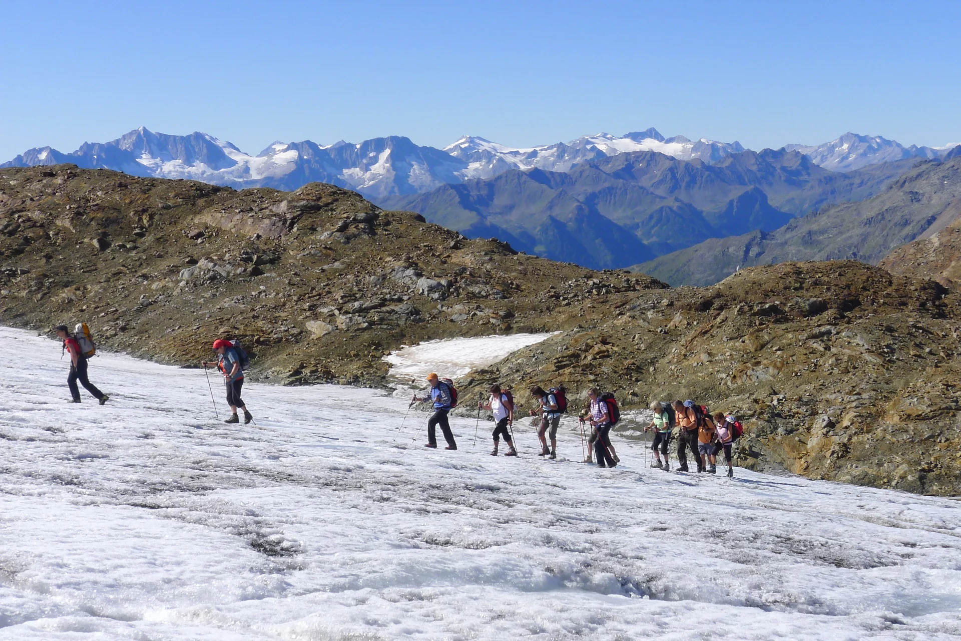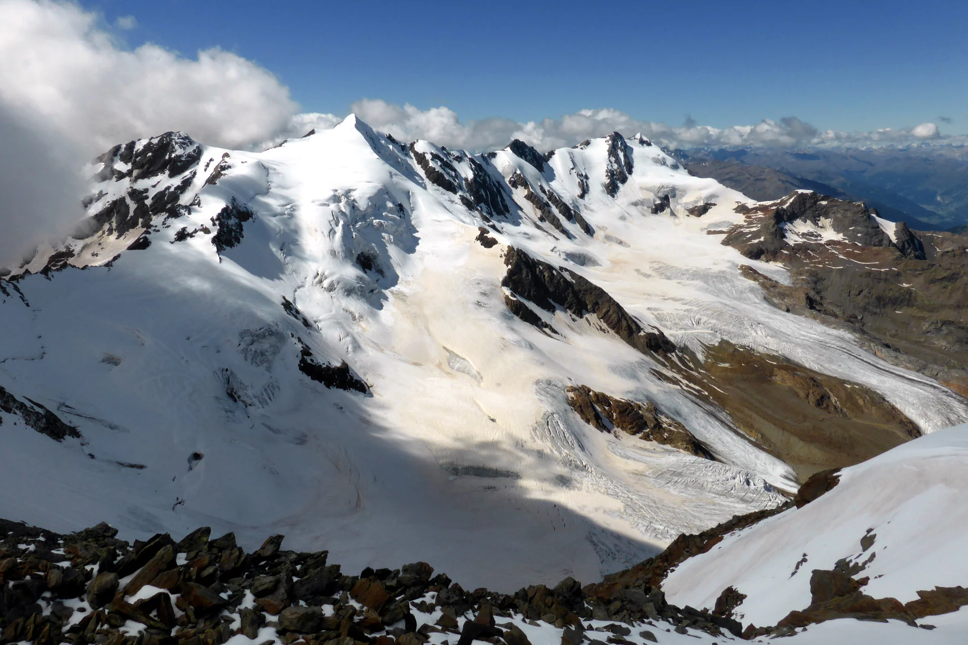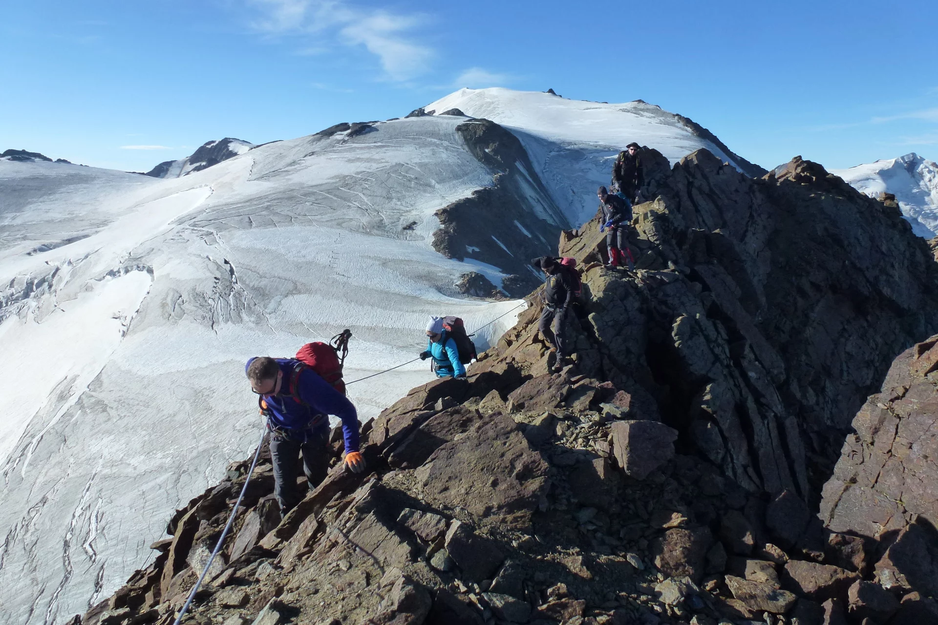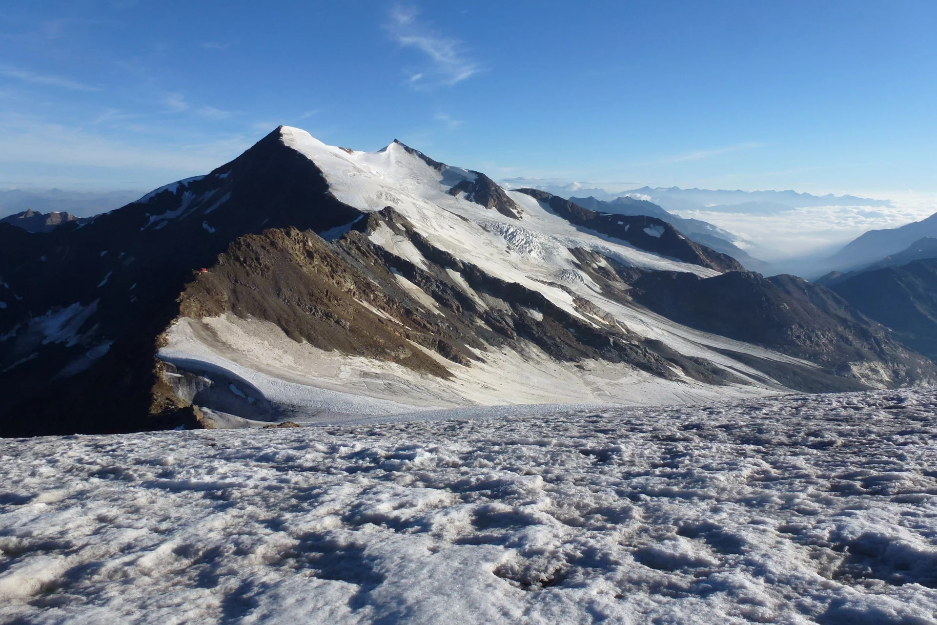 6 alpinistic days to reach every day with rope and crampons a summit above 3,000 m, based in welcoming alpine huts.