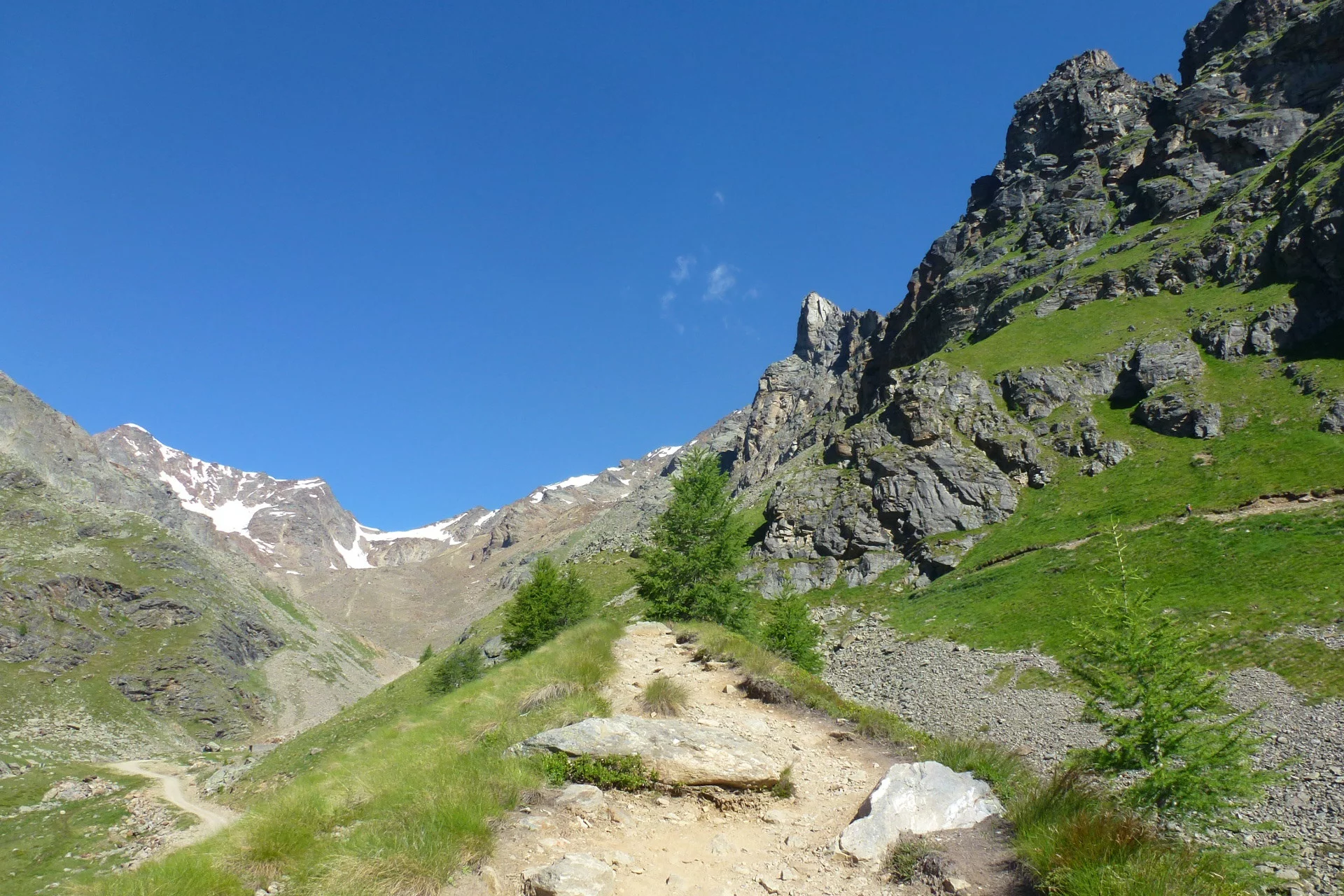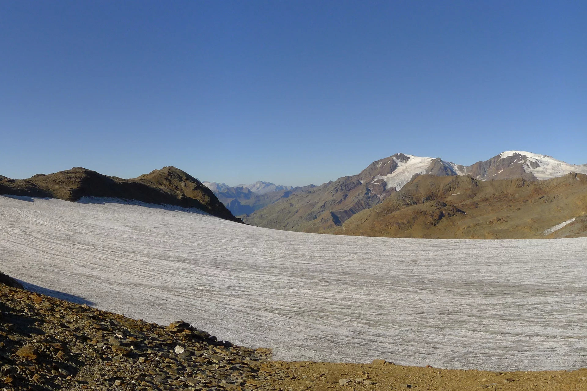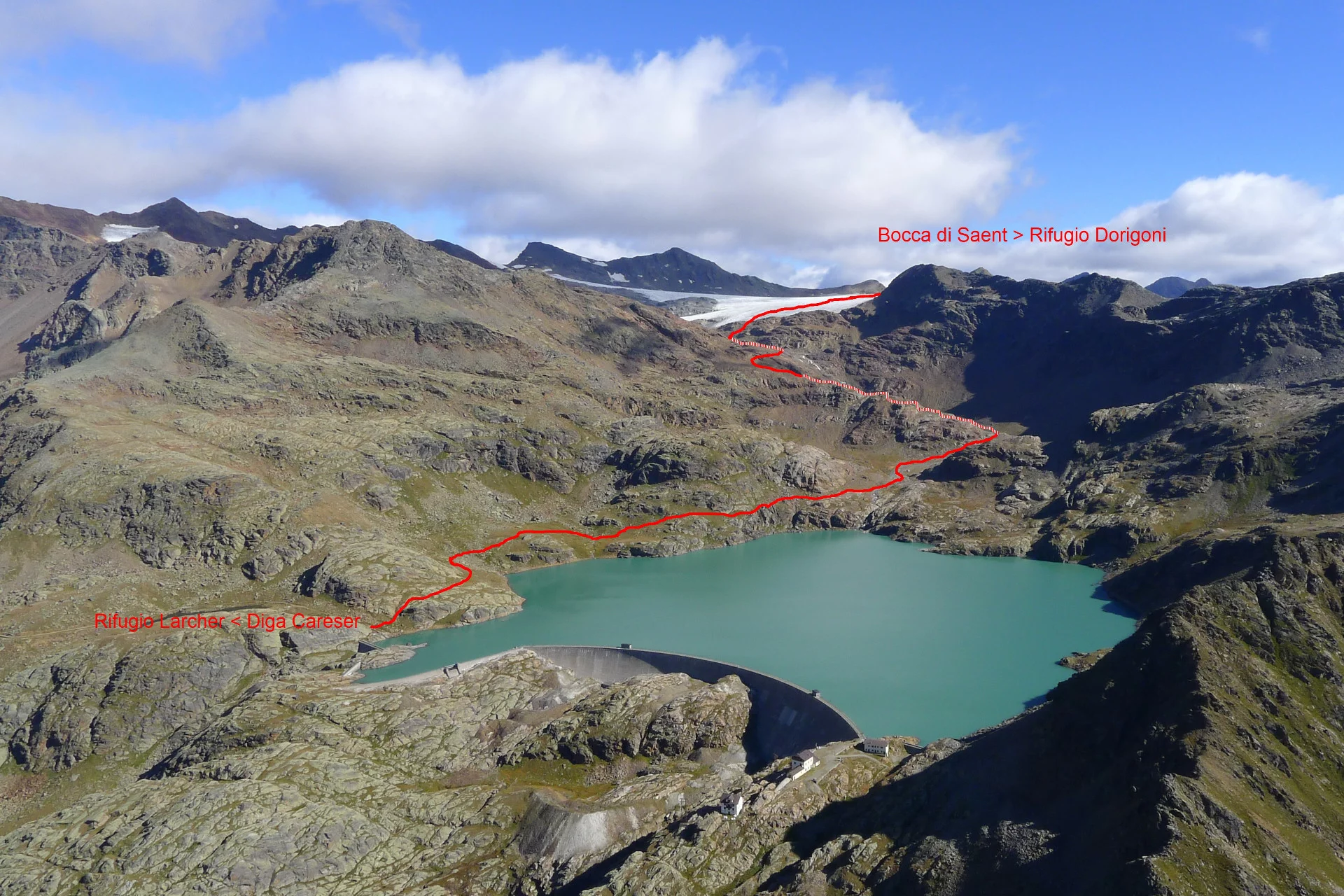 During the crossing you enjoy the best panorama on the ridge from Monte Vioz to Monte Cevedale and can realize the past action of the glaciers and their environmental and climatic significance. It is recommended to hike in good visibility conditions and with adequate training on high-altitude routes. In case of recent snowfall, the ascent to Bocca di Saènt and the glacier crossing become difficult also due to lack of tracks. Hiking poles are very useful. The use of rope and crampons, if following the marked route, is usually not necessary. It is advisable to inquire about glacier conditions at Rifugio Dorigoni or Rifugio Larcher.