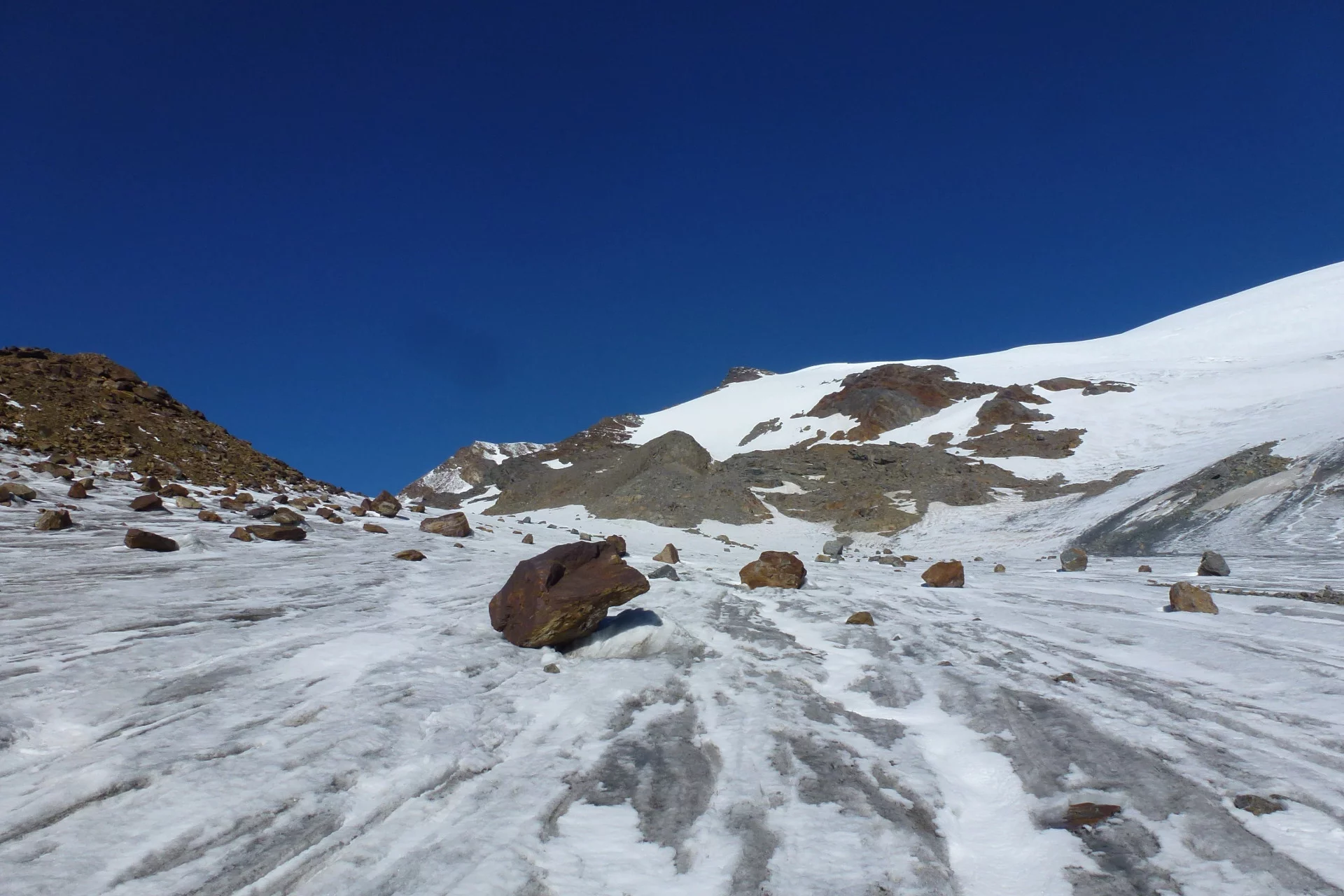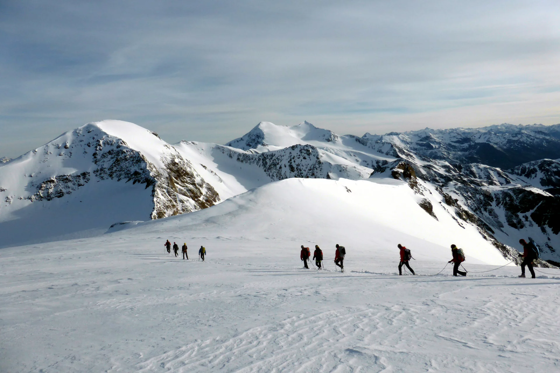 Alpine itinerary that requires experience at high altitude. Basic knowledge of alpine equipment such as crampons and ice axe is required.