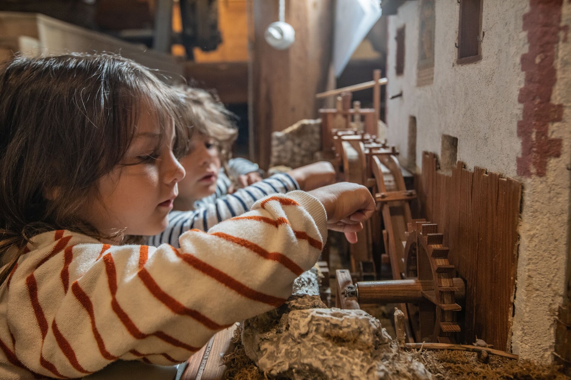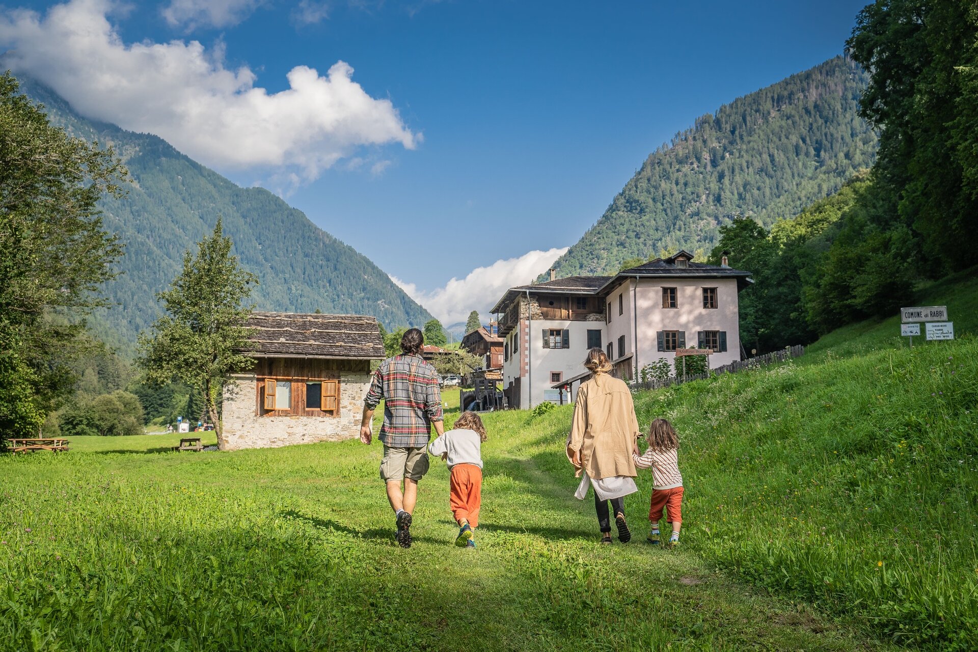 From the village of Malé, just after the Museo della Civiltà Solandra, near the characteristic stone arch located at the exit of the town towards Trento, turn left, following Provincial Road 141 towards Bolentina and Montes. At the first hairpin bend, take the dirt road to the right and follow it for about 100 metres. Continue to the left, gently uphill, on the wide, flat road that leads into Val di Rabbi. Follow it enjoying the shade and the roar of the Rabbies stream until you reach the locality Birreria with a bridge over the Rabbiés stream. After crossing the bridge, continue right for 50 metres, cross the provincial road and take the path on the left that leads in a few minutes to the Molino Ruatti, a characteristic mill powered by the current of the Rabbiés stream, once used to turn grain into flour. We recommend a visit here to get an insight into the local food culture and cereal processing methods.