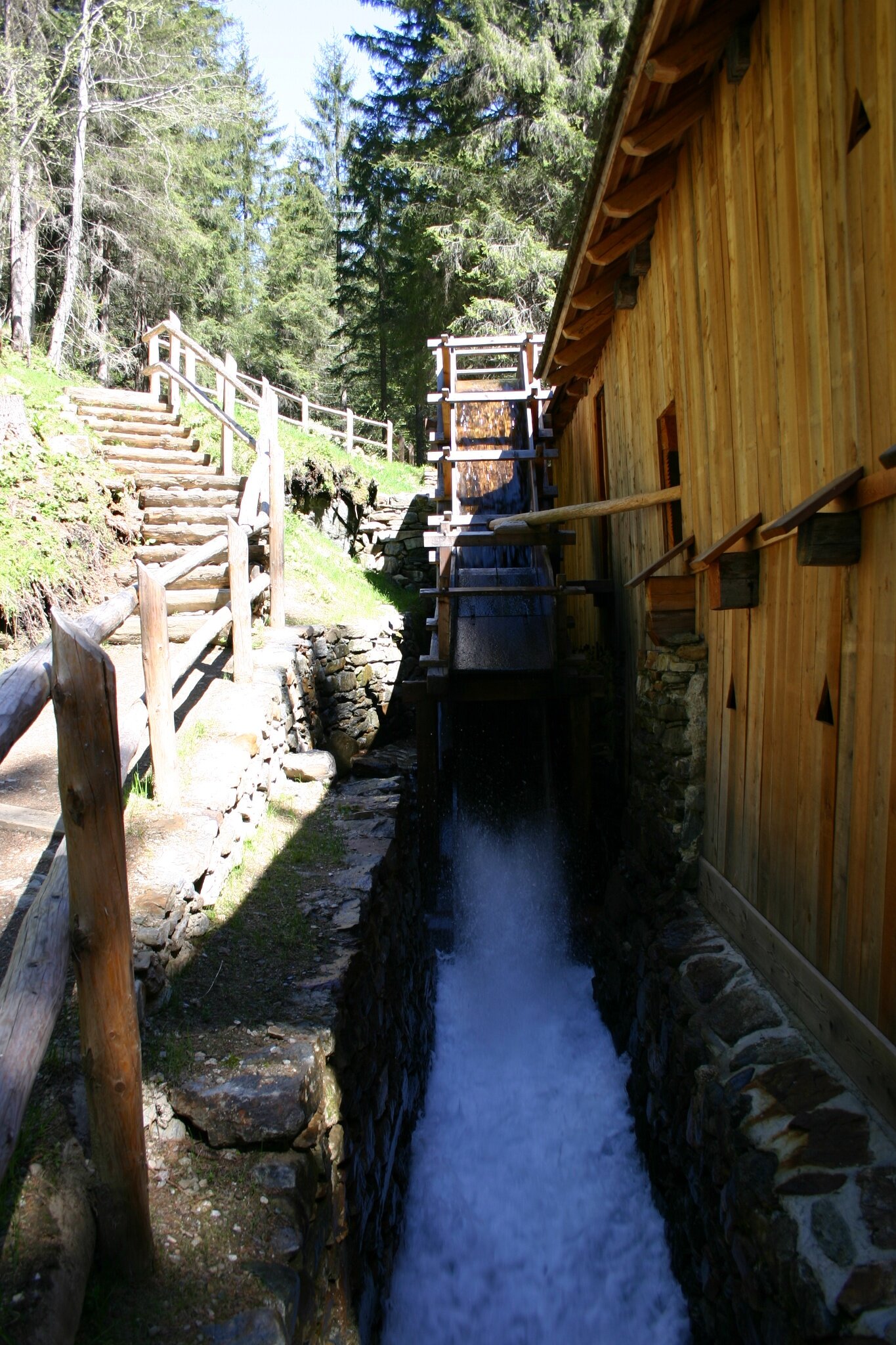 This thematic itinerary, also accessible to people with disabilities, takes us to discover evocative farms and ancient mills of Val di Rabbi; in particular, we can visit two waterwheel sawmills, which used the energy of water to transform logs into boards and beams for construction. Waterwheel sawmills were very common in the past, using water's energy to transform logs into boards and beams. Today, few remain operational. They spread in the Trentino area around the 13th century and were introduced by the Most Serene Republic of Venice, where they were already widely used for timber sawing: hence the name Venetian sawmill. The hydraulic sawmills in Val di Rabbi are relatively recent (18th century). Their introduction made the sawing of logs easier, faster, more accurate, and less tiring: the muscular strength of two or three men was replaced by the force of water, and a single worker – the sawyer – was enough to perform the various stages of processing.