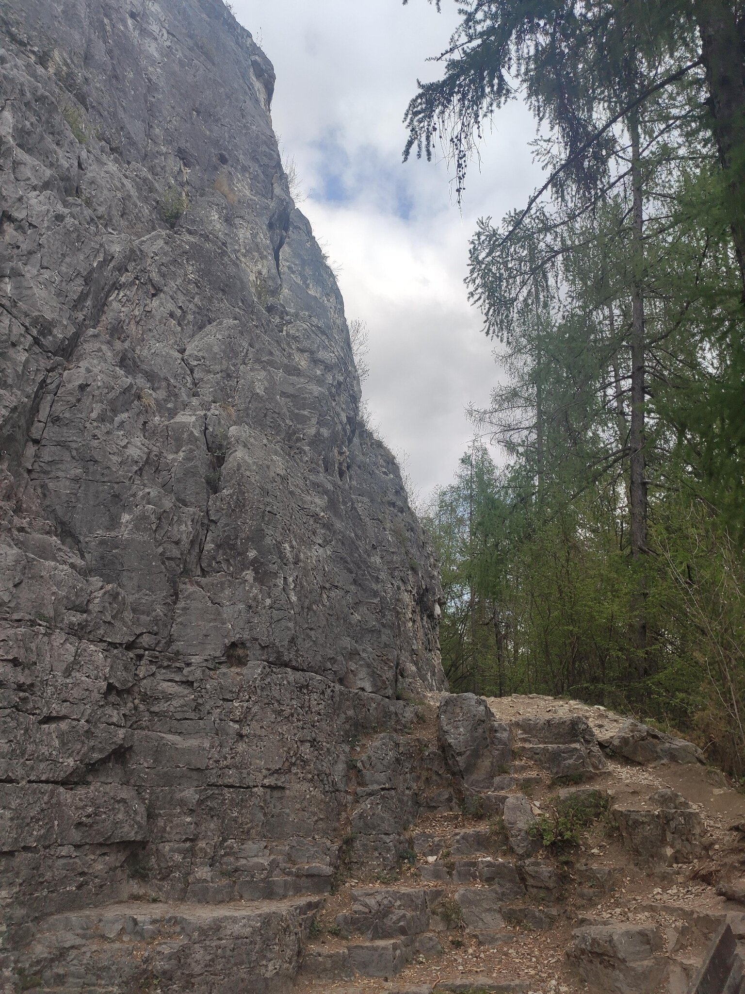 From the village of Terzolas, near Palazzo Torraccia, you head towards Samoclevo passing through Piazza della Chiesa and Via dei Canopi, following the signs for Valley trail no. 7. Once you reach Samoclevo, you can continue east on a comfortable flat path for about 4 km north of the villages of San Giacomo, Tozzaga, Bordiana, and Bozzana. From the main path, three branches lead off to the left, each requiring about 50 minutes: the first at Samoclevo to reach the homonymous Rocca, an ancient keep once used to control passage through the Noce Valley; the second above San Giacomo to reach the "Sassias" rock climbing area and the "cupmarked stones," which are boulders with curious hemispherical cavities; the third, above Bordiana, to reach the so-called "Trenches" of Bordiana and Bozzana, with ruins of positions dating back to World War I, where the observation slits and dug paths are still visible. From here, it is possible to descend to the village of Bordiana, where you can return to Terzolas by bus or by train.
