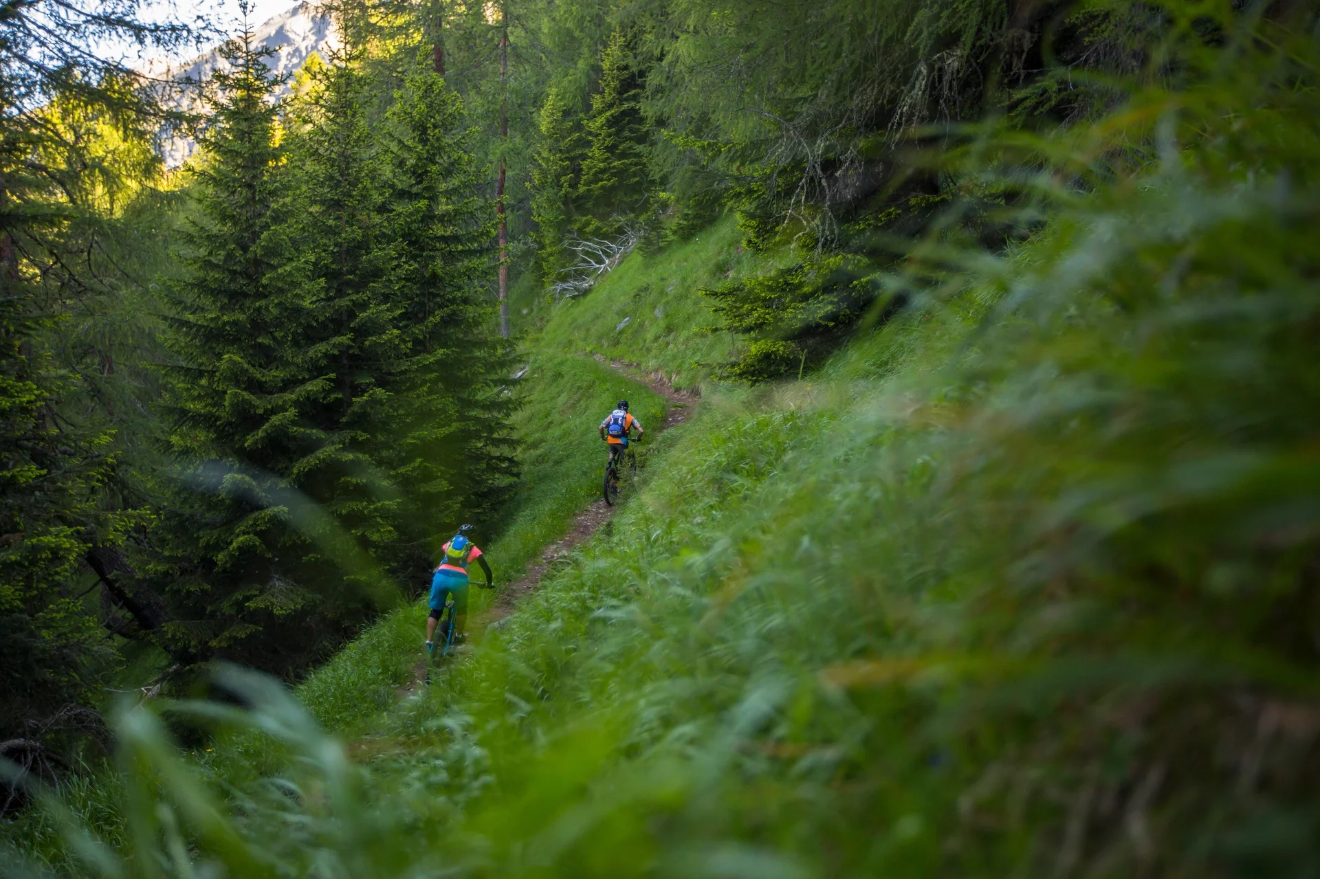 A very panoramic route that starts from the valley floor and, first ascending on asphalt road and then on dirt road, takes us to the ancient larches trail. From here starts a long single track of about 9 km and 1000 m of downhill elevation all to ride down to the valley floor.
