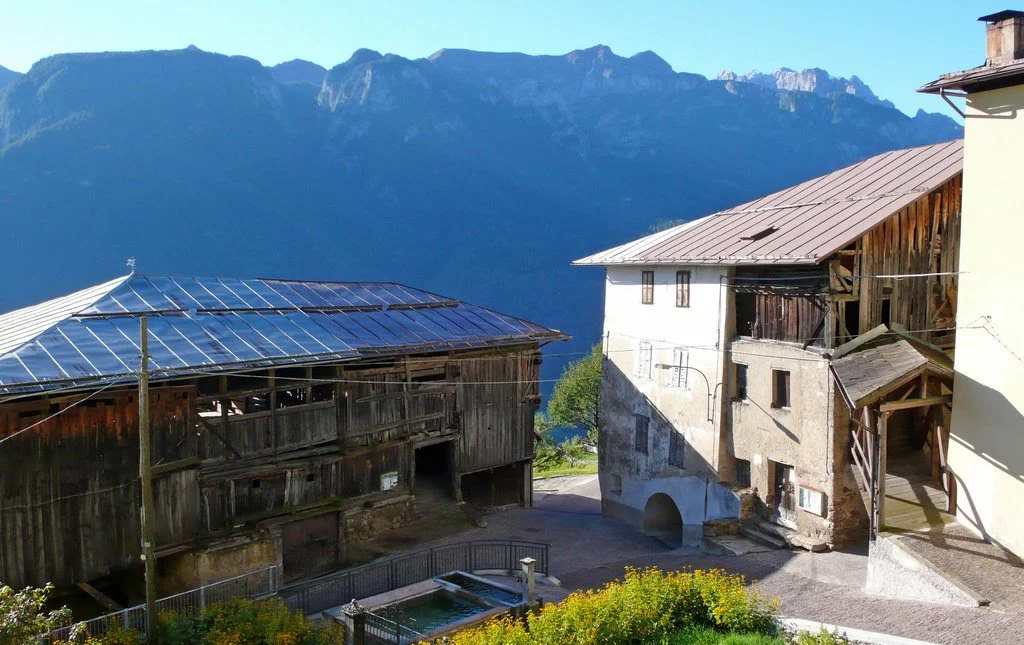 The place offers a spectacular view over Val di Sole and the villages of the valley floor, Passo Tonale, the mountains of the distant Brenta group, and the imposing Presanella Group.