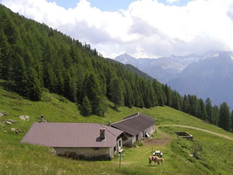 Following signs to Alpe Pozze, the road surpasses the town becoming unpaved and entering the larch forest beside typical alpine buildings and then continues in the forest becoming easier. Always keeping left towards Baita Pozze, you come out into the wide pastures of the alpine farms. Here the road, making wide hairpin bends across the vast pastures and surrounding environment, reaches Baita Pozze (shelter); after about 600 meters there is a hairpin turn and on the left, a small road-trail (pay attention) gradually descends towards the ridge of Cima Vegaia. The somewhat stepped trail used by livestock quickly leads to the Celentino pond (2,069 m), visible only in the early summer months. The panorama of the glaciers and the highest peaks of Vioz (3,645 m) and Presanella (3,556 m) is magnificent. Now the trail, running flat along the pond, leads towards Val di Peio to the recently renovated Malga Campo hosting a brand-new agritourism. The journey resumes along a steep forest road descending to the town of Celentino (1,264 m). From here there is a unique view of Comasine and the solitary little church of S. Lucia. Follow the Provincial Road to Strombiano; enter and cross the town; then follow the signs for Cusiano (birthplace of Quirino Bezzi, historian and mountain enthusiast) which lead, via the old unpaved connecting road, to the intersection between State Road no. 42 and the Provincial Road of Val di Peio. Continue on State Road to Cusiano and shortly after return to Pellizzano (the Gothic-Renaissance Church of S. Maria is beautiful).