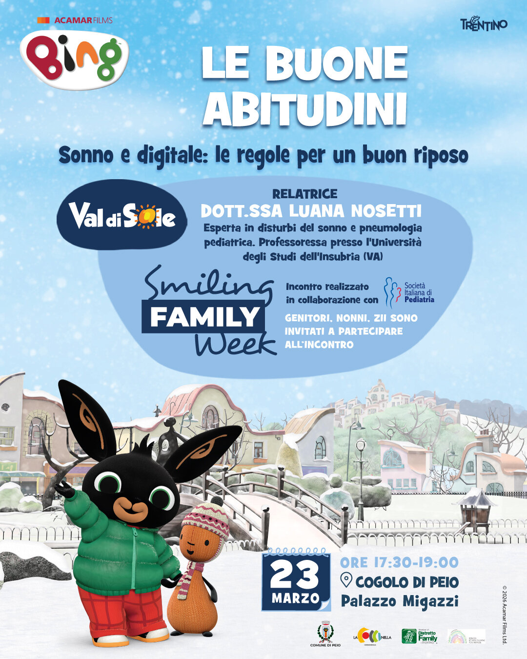 Yes, you read that right. The beloved Bing and his friend Flop are waiting for you on the snow of the Skiarea Pejo3000 for lots of fun and playtime. Your children will be able to hug Bing and Flop in person, dance with them, and even have a snack together!