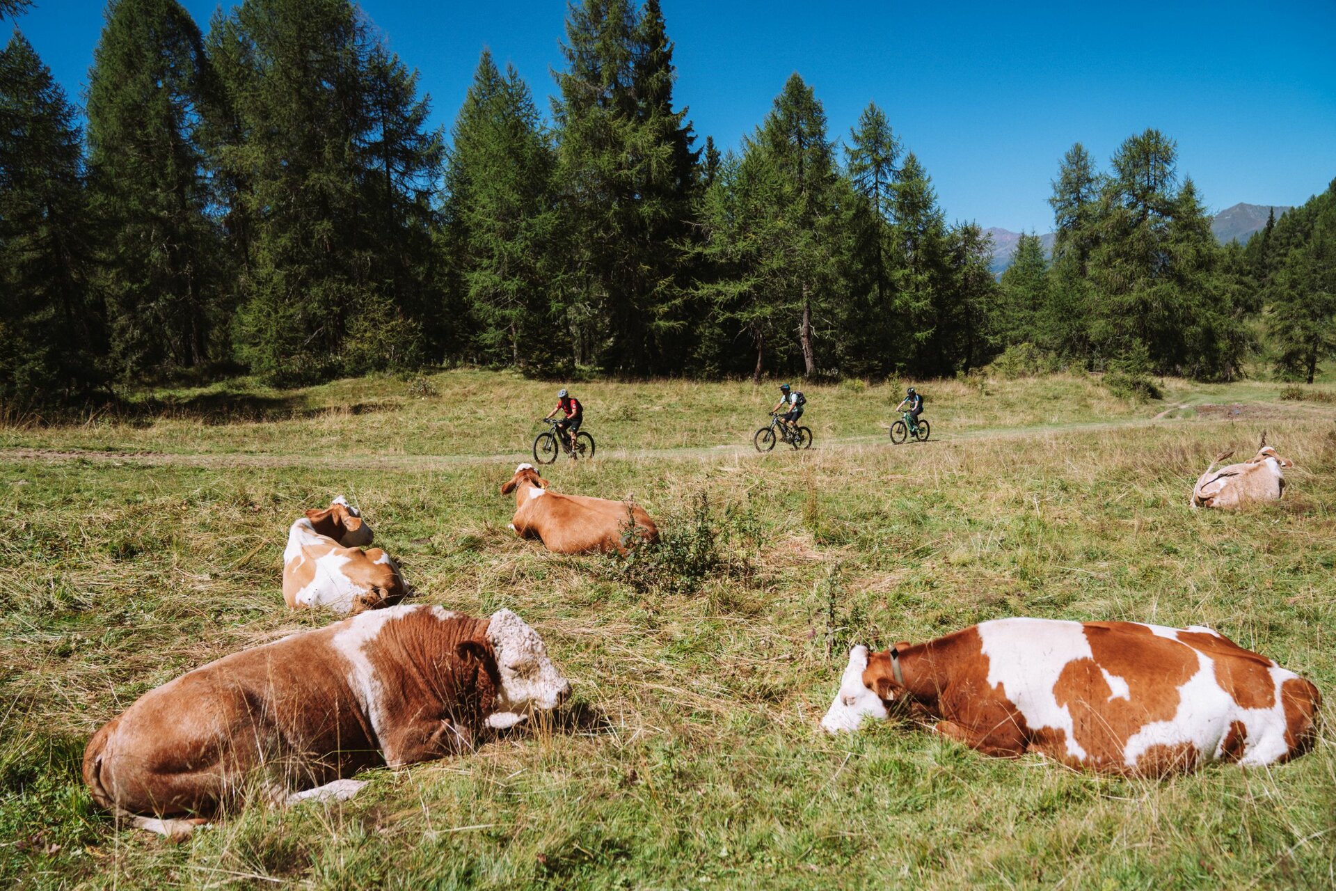 Partendo dalla stazione ferroviaria di Caldes, si pedala in discesa fino a raggiungere la località Contre e dopo aver attraversato il Fiume Noce, ci si dirige verso il piccolo paese di Cavizzana, l'unico paese posto sul lato destro del fiume che attraversa l'intera valle. Da qui, ha inizio la salita con pendenza costante sulla strada forestale che conduce al Monte Peller e che ti permetterà di ammirare paesaggi unici. In prossimità della cima del monte, caratterizzata da un colore rossastro e da una forma insolita, si trova Malga Tassulla, un piccola malga circondata dai versi e ampi pascoli, in cui potrai trovare delle simpatiche mucche a brucare l'erba. Qui potrai prendere una pausa per contemplare lo spettacolare paesaggio che ti circonda. Superata la Malga tassulla, si inzia a fare il giro al monte, raggiungendo il grazioso Lago delle Salare per poi iniziare la discesa su strada sterrata, piuttosto ripida, che condurrà nuovamente in località Contre a Caldes.
