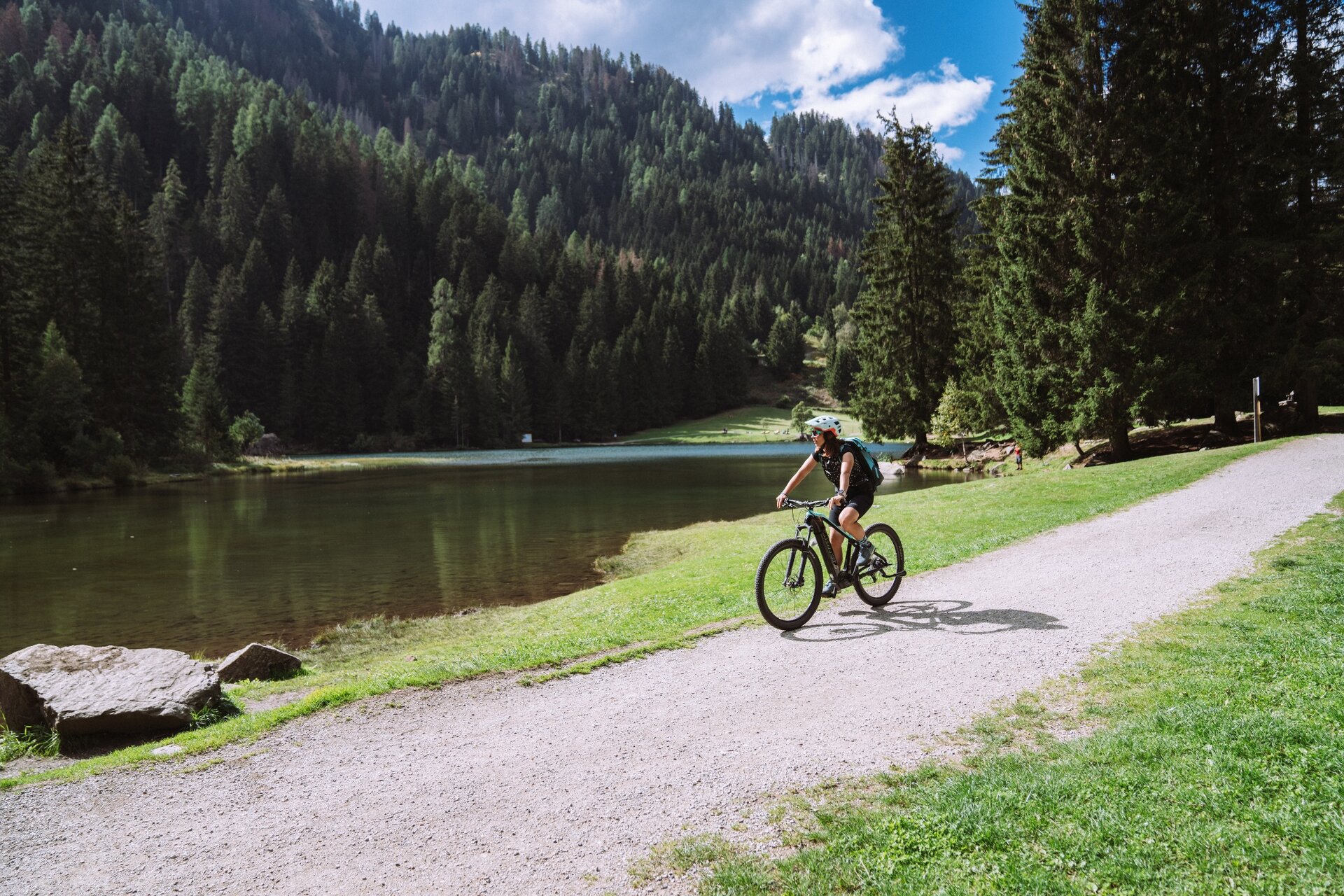 L’itinerario inizia nei pressi del Municipio di Ossana, dove è presente un comodo parcheggio auto con posti riservati a persone disabili. Se non lo hai già fatto, prenditi del tempo per visitare il paese di Ossana, nominato uno dei Borghi più belli d’Italia. Non perdere l’occasione di visitare il Castello San Michele, decisamente affascinante con il suo imponente mastio che ti permette di avere una visuale unica sulla Val di Sole. Partendo da Ossana si pedala guadagnando rapidamente quota su strada asfaltata a tornanti fino ad arrivare a Valpiana, dove verdi pascoli, fresche acque e pareti rocciose ti lasceranno a bocca aperta. La vista da qui spazia dalla Val di Bon e al Monte Giner. Per chi volesse concedersi una piccola pausa, è possibile inoltrarsi proseguendo su asfalto in Valpiana sino a giungere all’omonima malga.