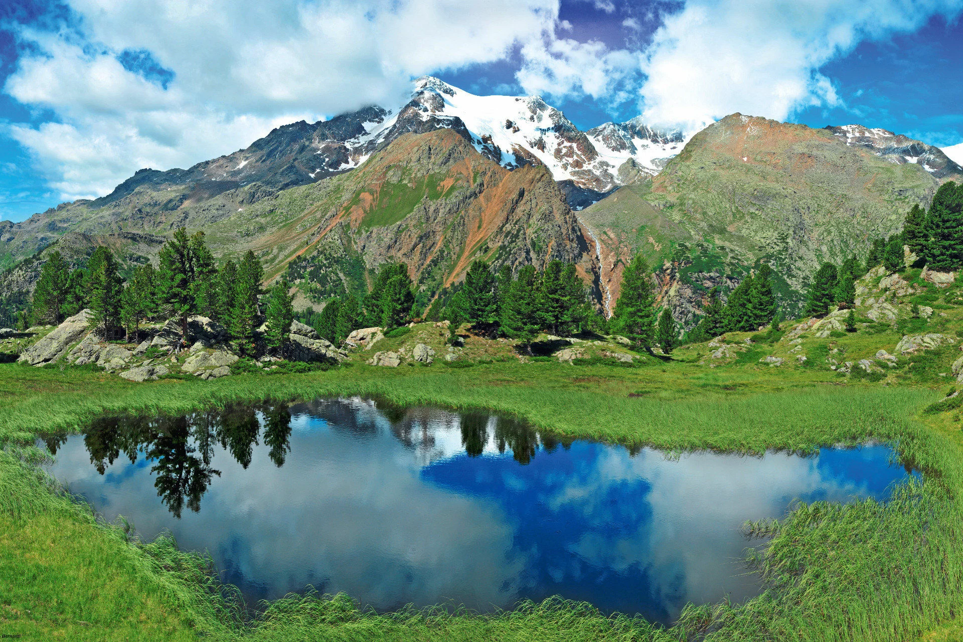 Il paesaggio è reso particolarmente suggestivo dalle imponenti cime del Cevedale, del Palon de la Mare, del Rosole e del Vioz, che si specchiano nelle acque dei laghi.