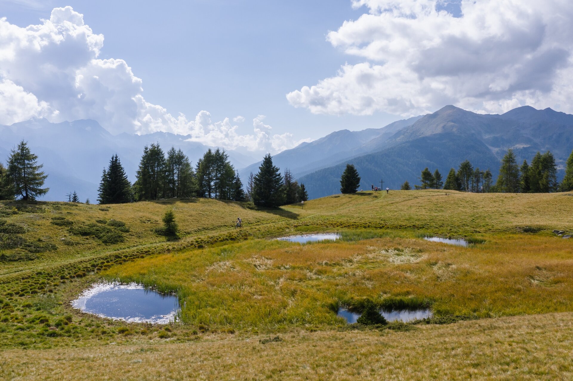 A lato dello stallone parte il sentiero per il lago Monte o lago di Celentino. Il sentiero si addentra nel bosco, lasciando poco spazio alla visuale, ma poi all’arrivo nella radura del lago si apre una vista spettacolare sull’alta val di Sole.