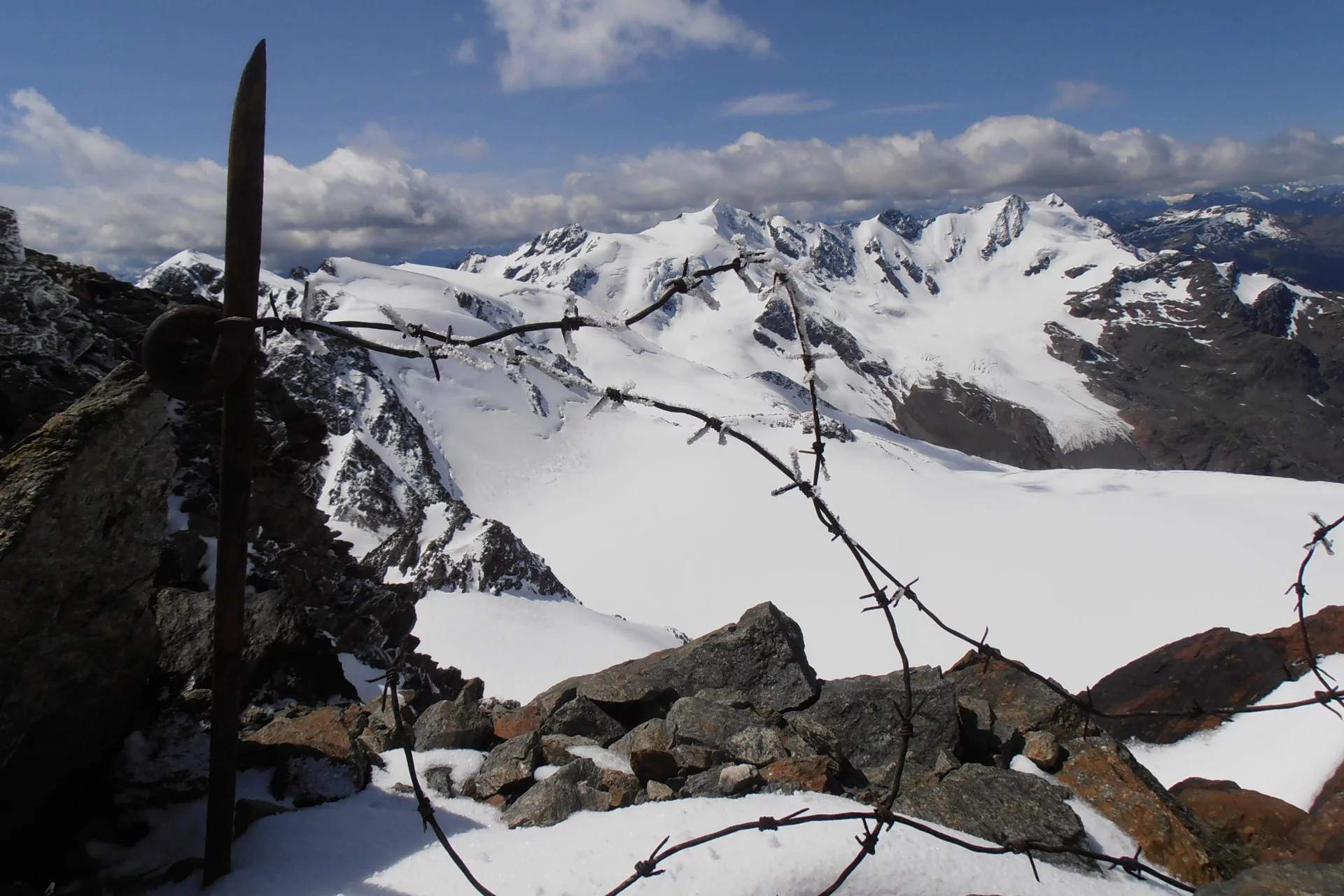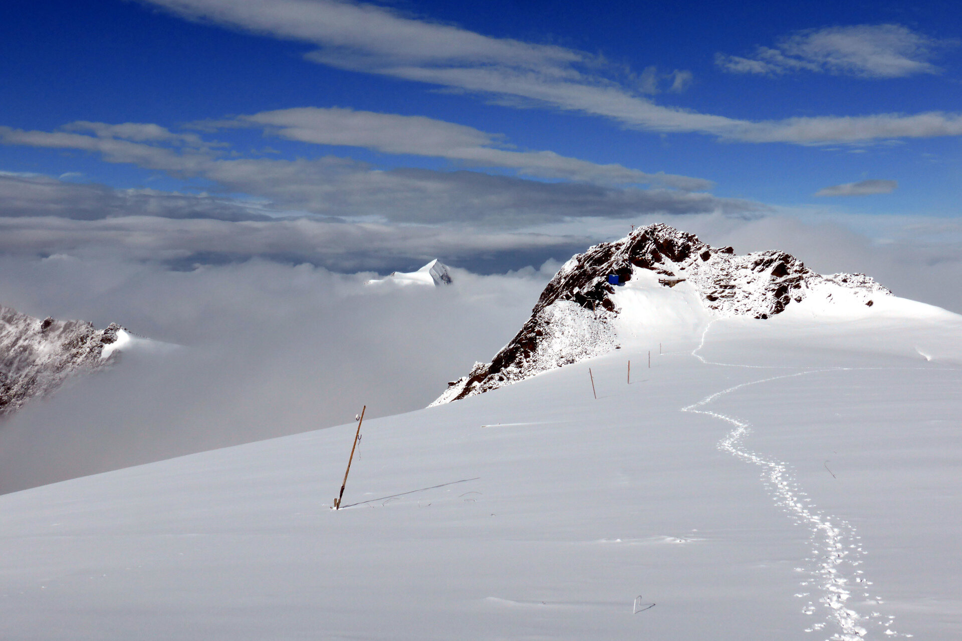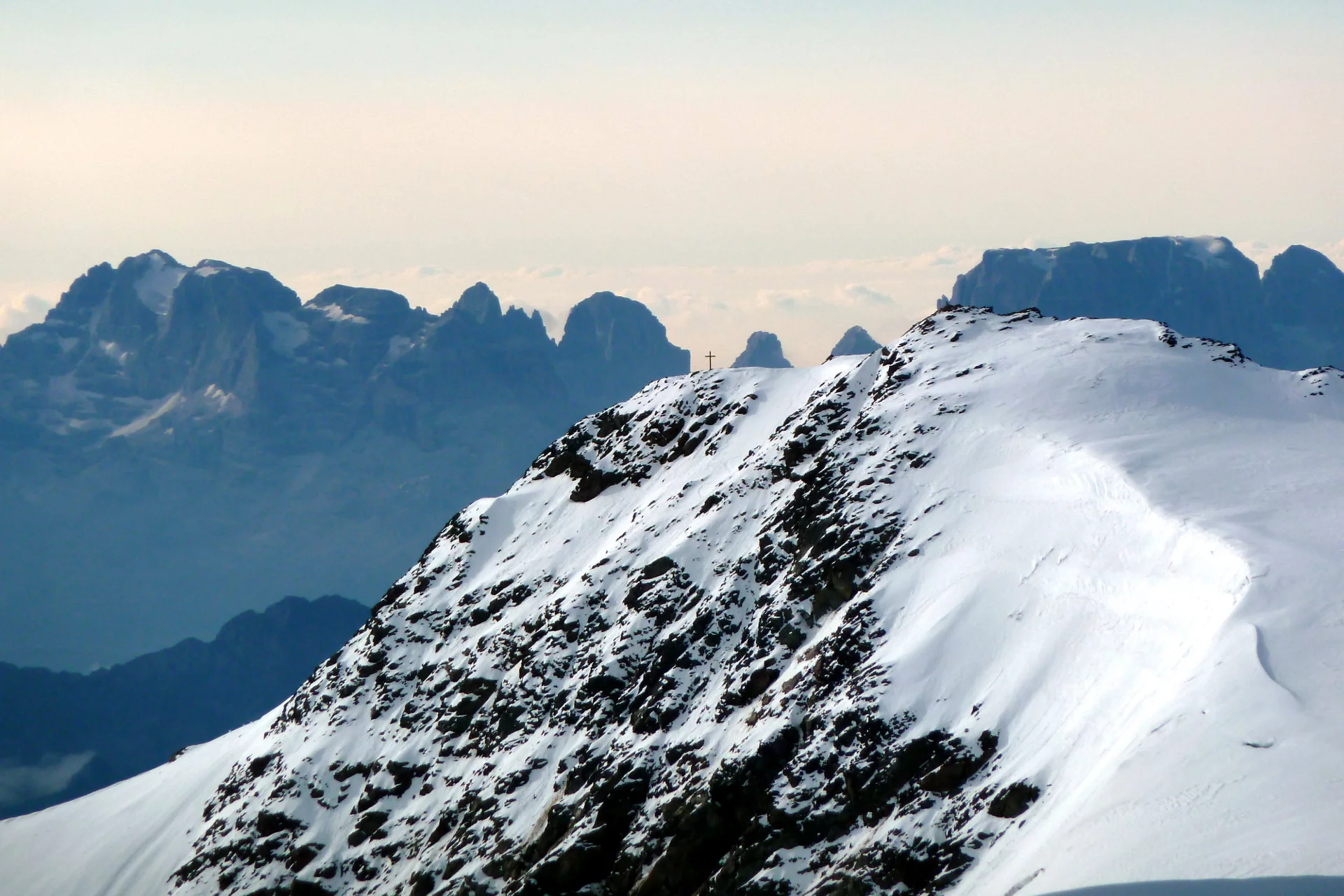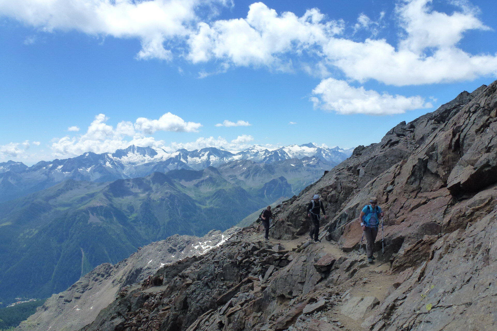 Da qui seguire la vetta fino a raggiungere il Monte Vioz (3.645m), dove si gode di un panorama straordinario sulle Tredici Cime, sull'Adamello-Presanella e sulle Dolomiti di Brenta. Dopo una breve camminata sul ghiacciaio, si raggiunge la Punta Linke (3.631m) e il sito archeologico interessante della Grande Guerra. Negli ultimi decenni, il ghiaccio e la neve hanno conservato l'intero forte nel suo stato originale, permettendo la creazione di un eccezionale museo a cielo aperto in alta quota.