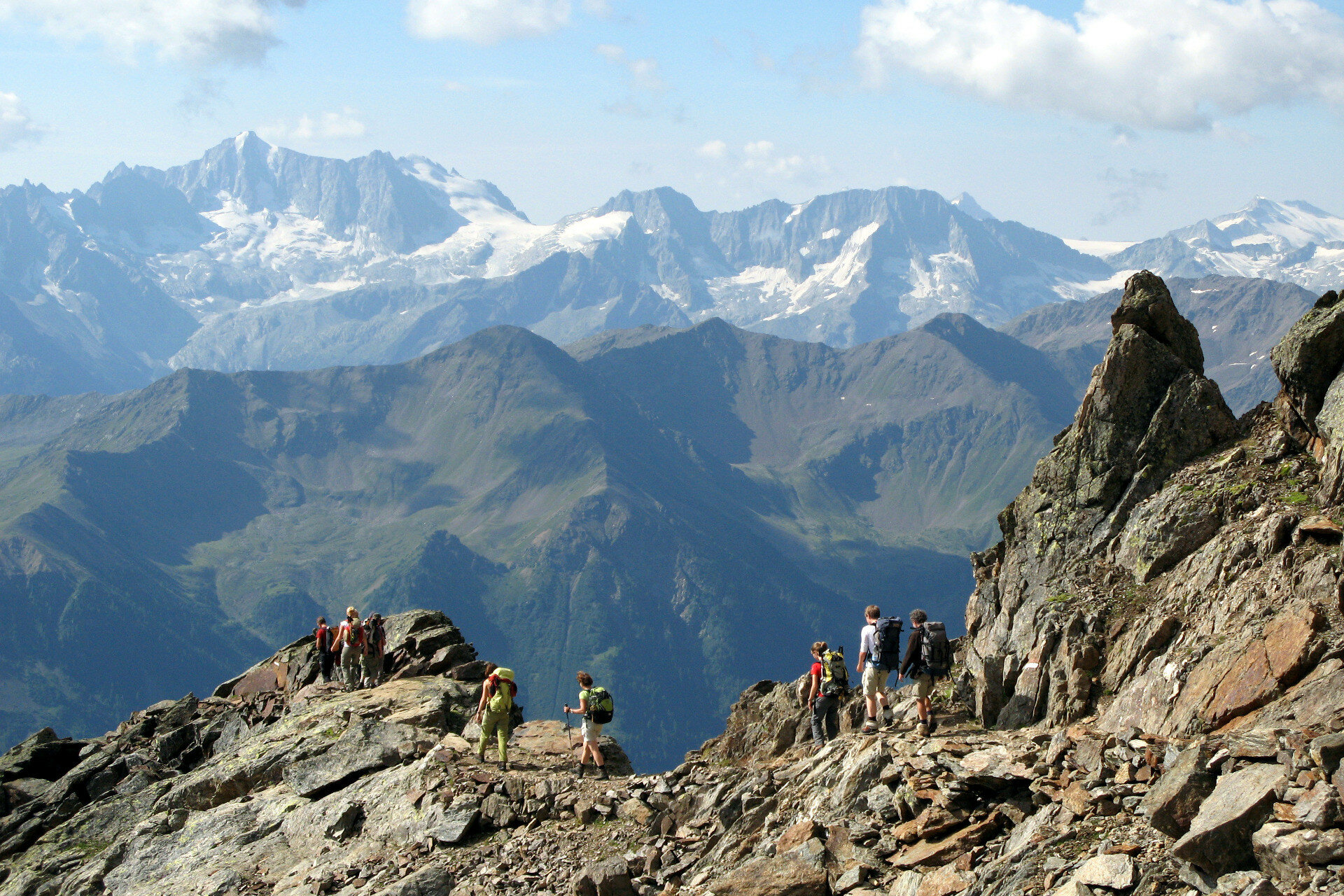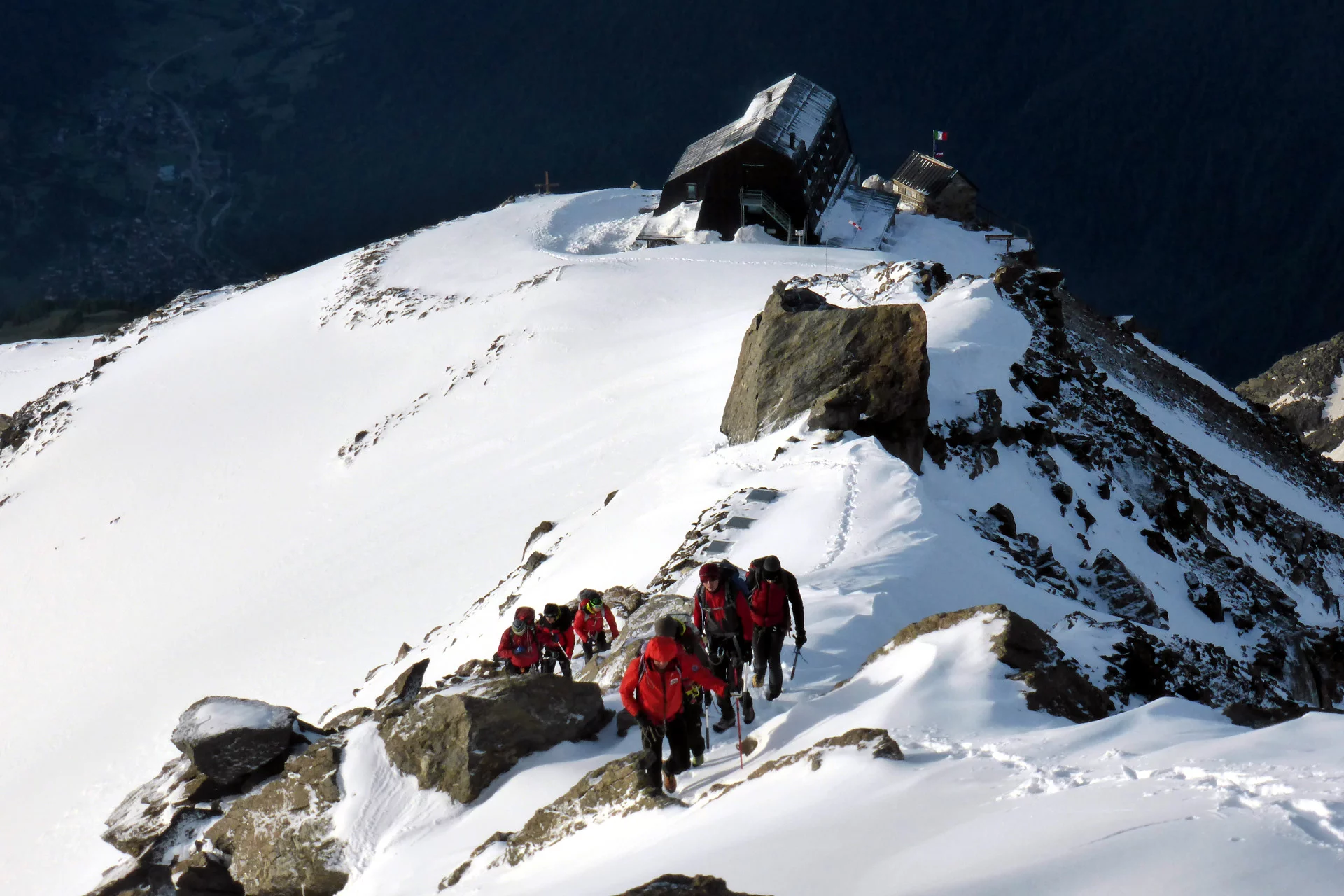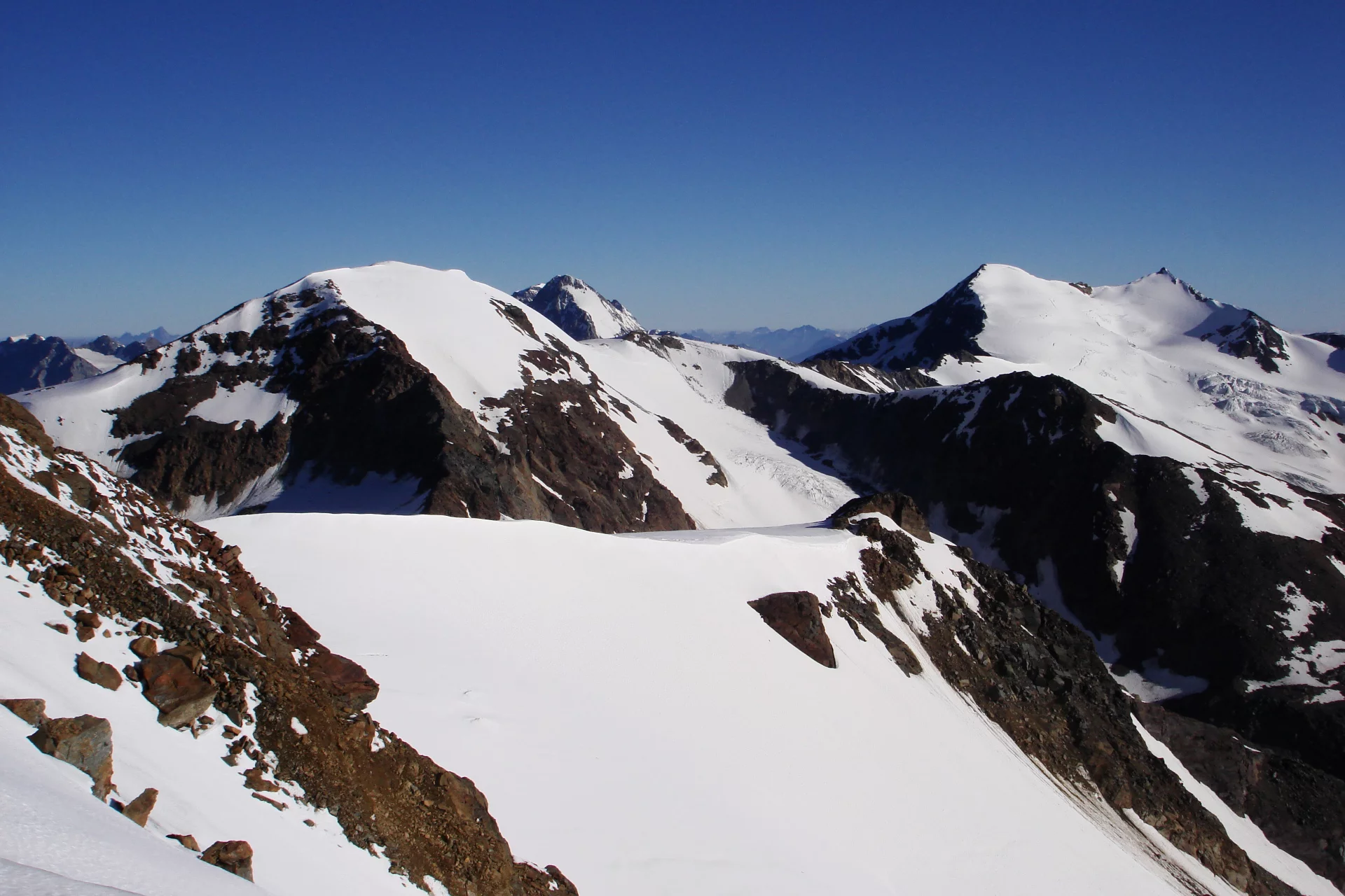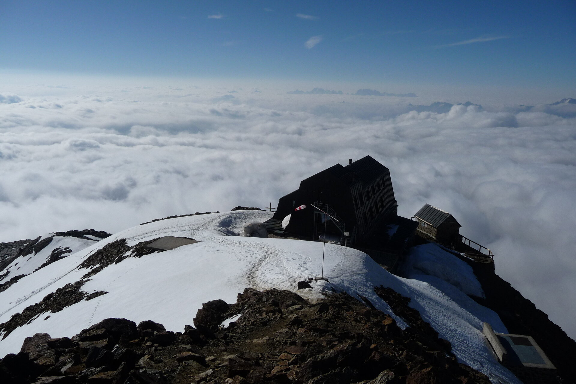 Da qui seguire la vetta fino a raggiungere il Monte Vioz (3.645m), dove si gode di un panorama straordinario sulle Tredici Cime, sull'Adamello-Presanella e sulle Dolomiti di Brenta. Dopo una breve camminata sul ghiacciaio, si raggiunge la Punta Linke (3.631m) e il sito archeologico interessante della Grande Guerra. Negli ultimi decenni, il ghiaccio e la neve hanno conservato l'intero forte nel suo stato originale, permettendo la creazione di un eccezionale museo a cielo aperto in alta quota.
