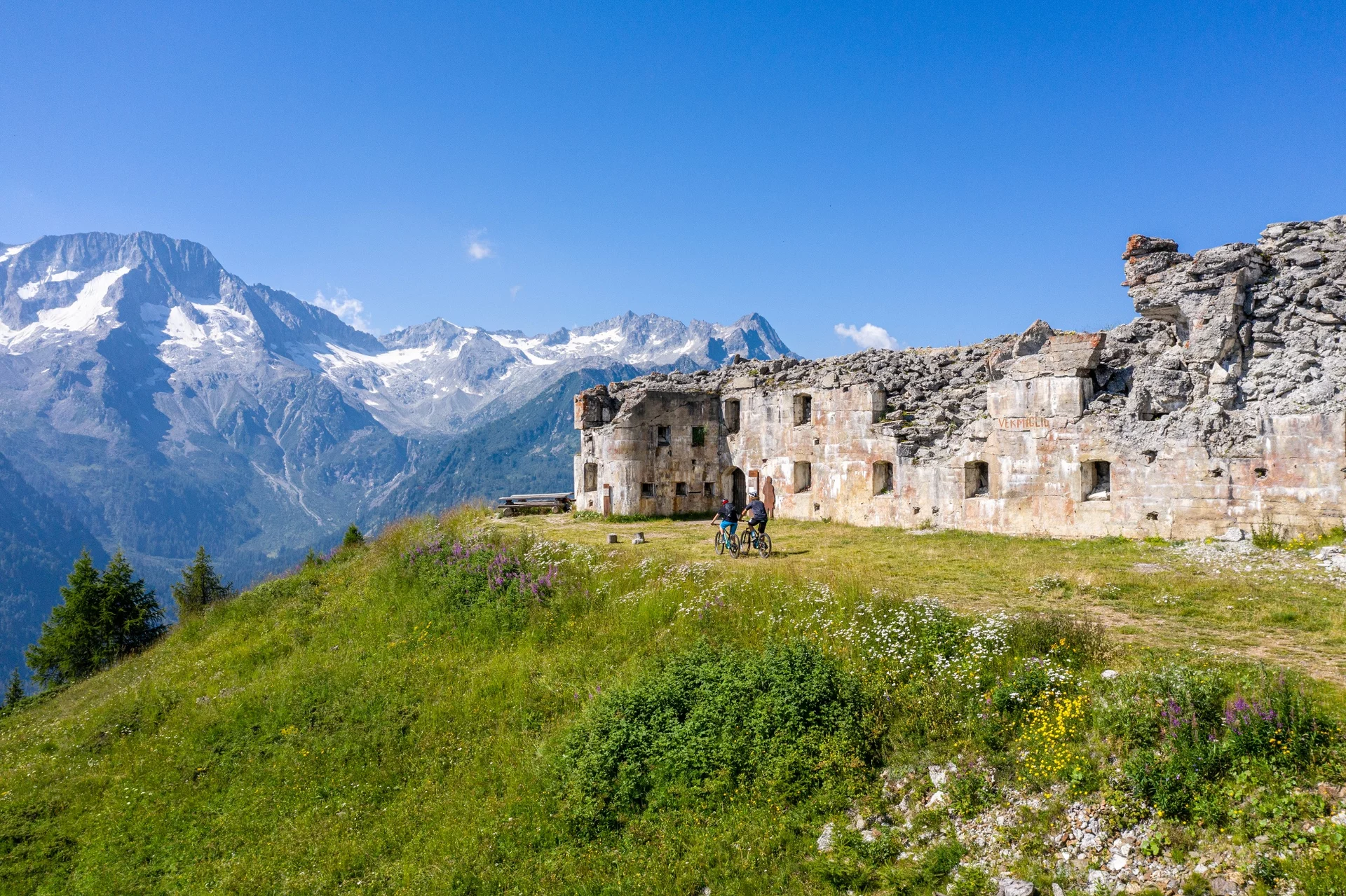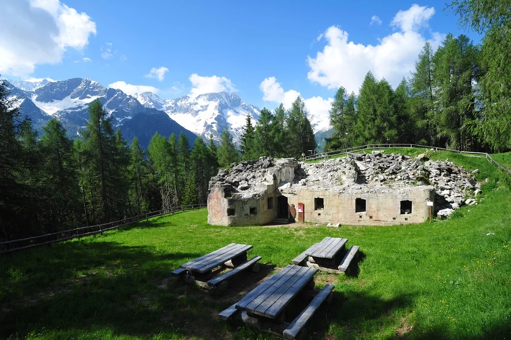 Questa escursione parte dallo storico Ospizio San Bartolomeo a quasi 2.000 metri di altezza. Il primo forte che si incontra è Forte Mero. Da qui la strada inizia a salire e dopo 250 metri di dislivello si raggiunge Forte Zaccarana. Punto panoramico di rara bellezza, dal Forte si possono ammirare cime imponenti come la Busazza, il maestoso scenario della Presanella, le creste dei Monticelli, l’ampia sella del Tonale e dell’alta Val di Sole. L’interno del Forte Zaccarana è parzialmente visitabile (solo con visite guidate). La camminata termina con un sentiero molto panoramico, ricco di flora di alta montagna.