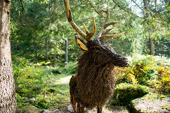 Questa camminata attraversa uno dei luoghi più spettacolari della Val di Rabbi. Ti avvicinerai alla tradizione, passando tra antichi masi contadini e ti inoltrerai nel bosco, dove ad accompagnarti lungo il sentiero saranno alcune installazioni raffiguranti gli animali del bosco, realizzate con materiali della natura dall'artista Maurizio Misseroni e accompagnate dai versi della poetessa Teresa Girardi. Al ritorno rilassati al percorso Kneipp all’aperto con vista su questo meraviglioso paesaggio da cartolina.