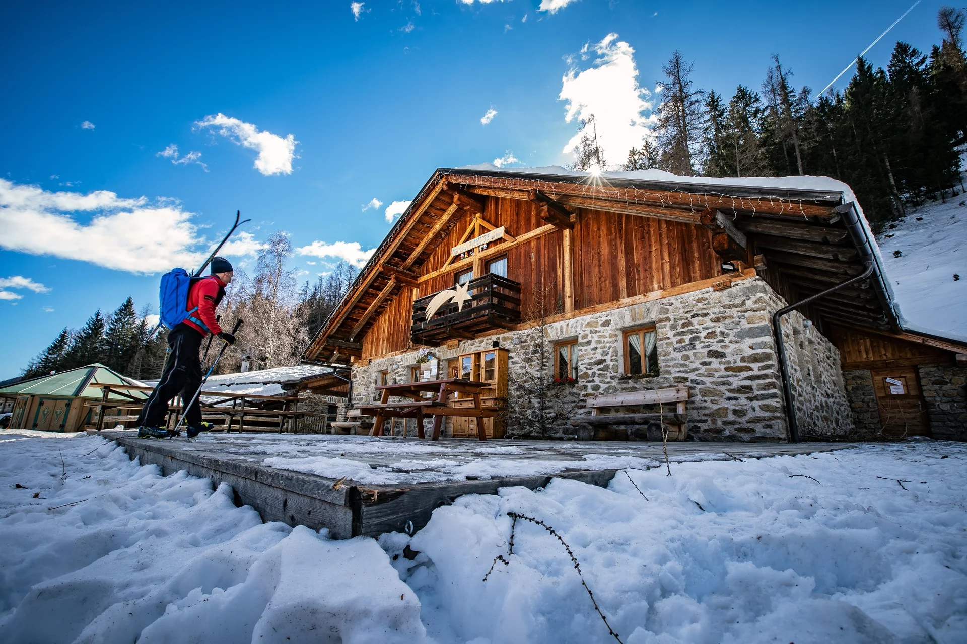 Dal parcheggio in località Rabbi Fonti, nei pressi delle Terme di Rabbi (chiuse in inverno), segui l'evidente strada forestale che sale dal lato sinistro della strada principale, che indica la direzione per Ponte Sospeso e Malga Fratte.