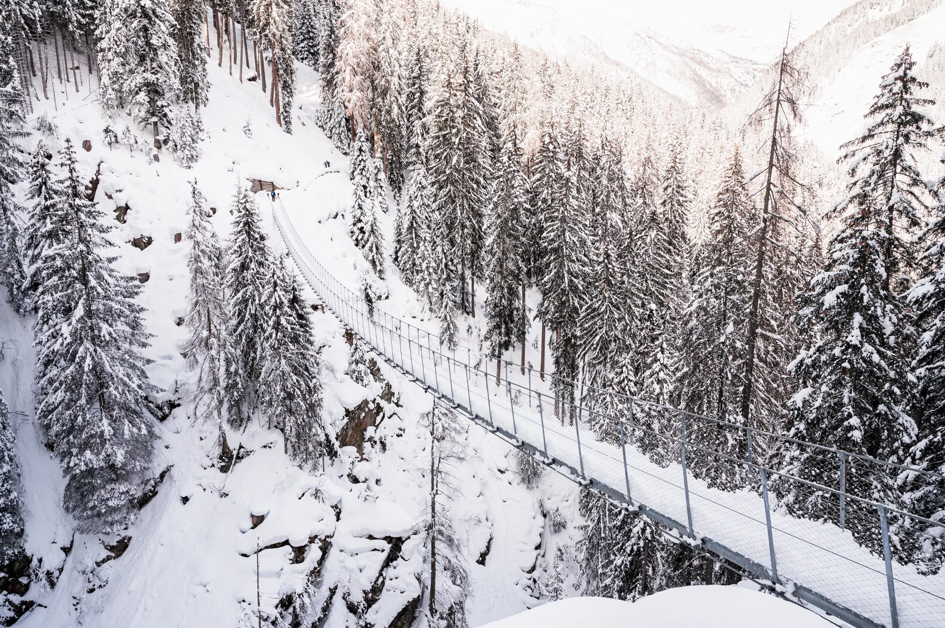 Questo itinerario nel Parco Nazionale dello Stelvio ti guida alla scoperta del ponte sospeso, una delle attrazioni più visitate della Val di Rabbi. Proverai l'emozione di camminare a 60 metri da terra, tra panorami innevati e le cascate Ragaiolo, spettacolari tra spruzzi d'acqua e specchi di ghiaccio.