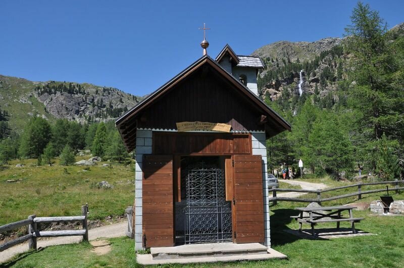 Passare sul lato opposto a quello di salita e, a sinistra della chiesetta, si trova il sentiero 103 che conduce a La Forcola.