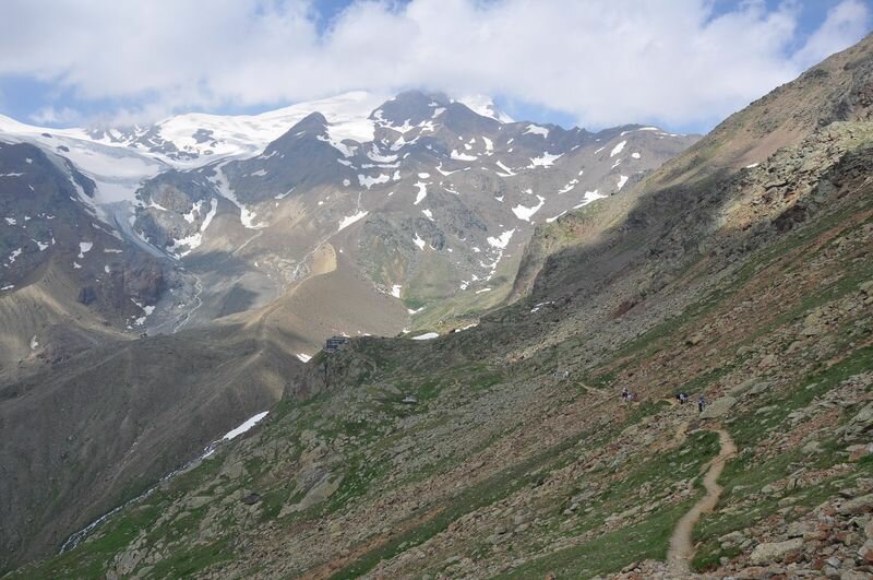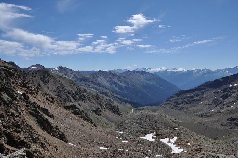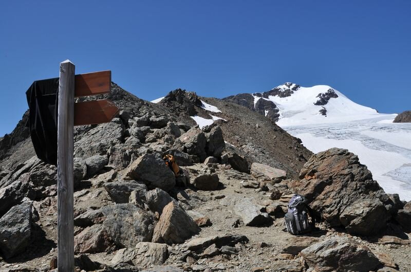 La fatica profusa per raggiungere il piccolo passo è ampiamente ripagata dal panorama che si può godere da questo luogo e per le vedute sul ghiacciaio del Cevedale e tutta la Val Venezia e sul ghiacciaio ai piedi della Zufallspitzen.