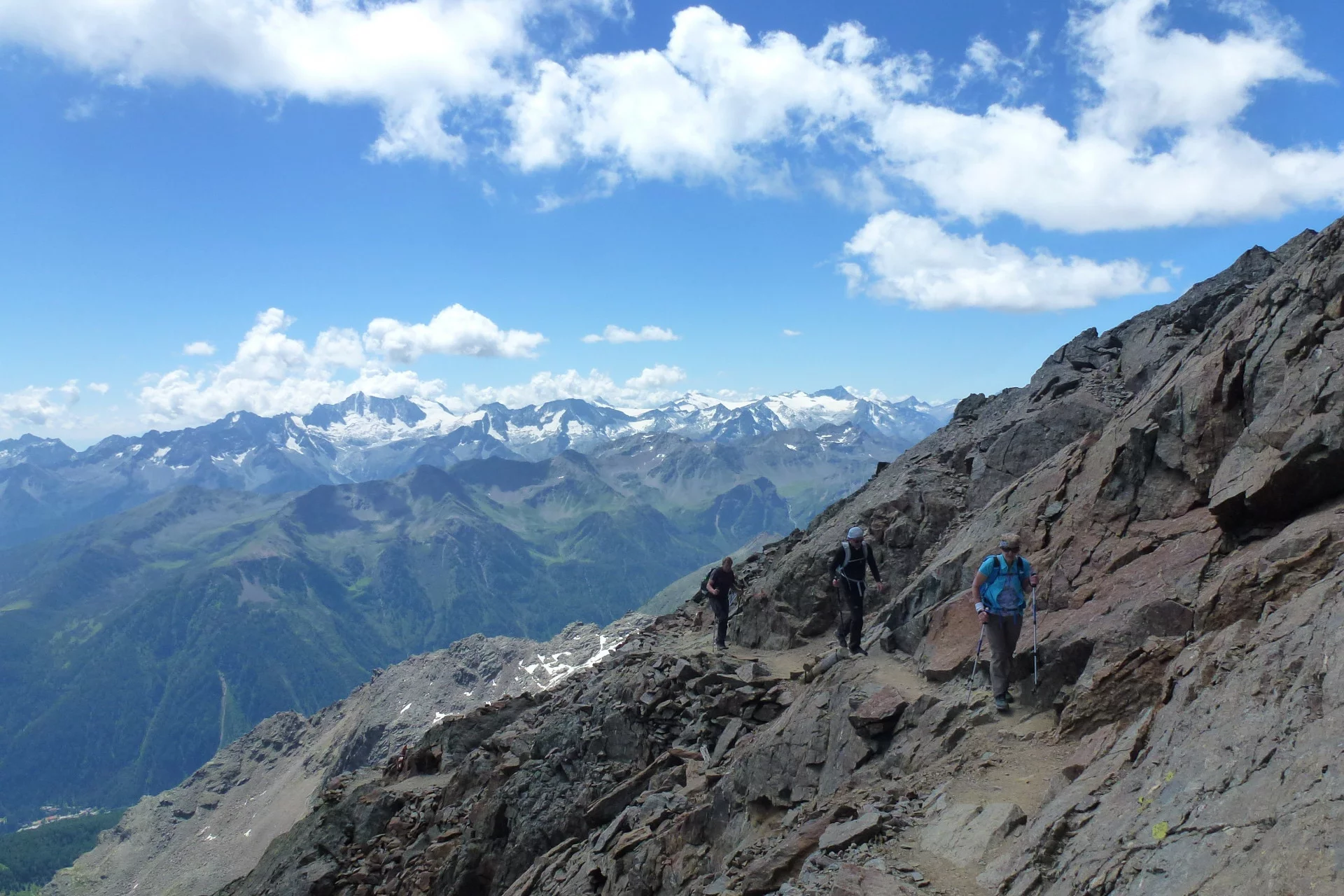 La partenza è da Peio Paese, in Loc. San Rocco nei pressi del Cimitero Austroungarico. Si imbocca sulla destra il sentiero sulla destra SAT 105 seguendo le indicazioni per Malga Saline. Giunti alla Malga si presegue lungo il sentiero SAT 105 lungo un percorso non particolarmente lungo, ma ripido, fino a giungere in località "Saroden" e percorrendo il sentiero lungo il "Filon de i Omeni". Da qui si segue il SAT 105, una vecchia strada militare risalente al 1915/18, che dopo una serie di tornanti ti porterà alla dorsale del Monte Vioz. Proseguendo in salita (non troppo ripida) passerai il Dente del Vioz, una caratteristica torre a forma di dente, dopo altri tornanti ripidi a Brick (3.206m) un tratto di strada attrezzato con funi metalliche (fai attenzione qui). L'ultimo tratto della salita, su alcuni tornanti stretti, e raggiungerai il Rifugio Vioz Mantova (3.535m). Ti aspetta una vista mozzafiato sulle tredici cime, sull'Adamello-Presanella e sulle Dolomiti di Brenta.