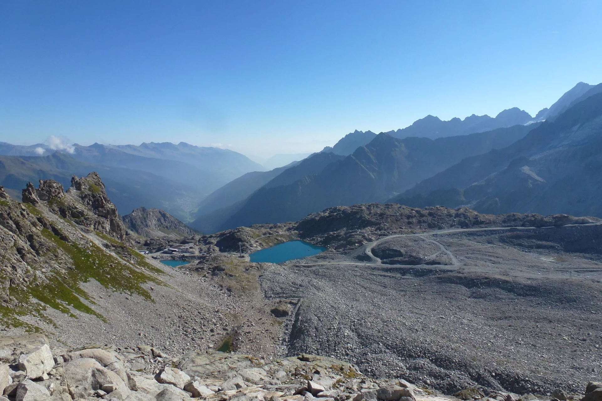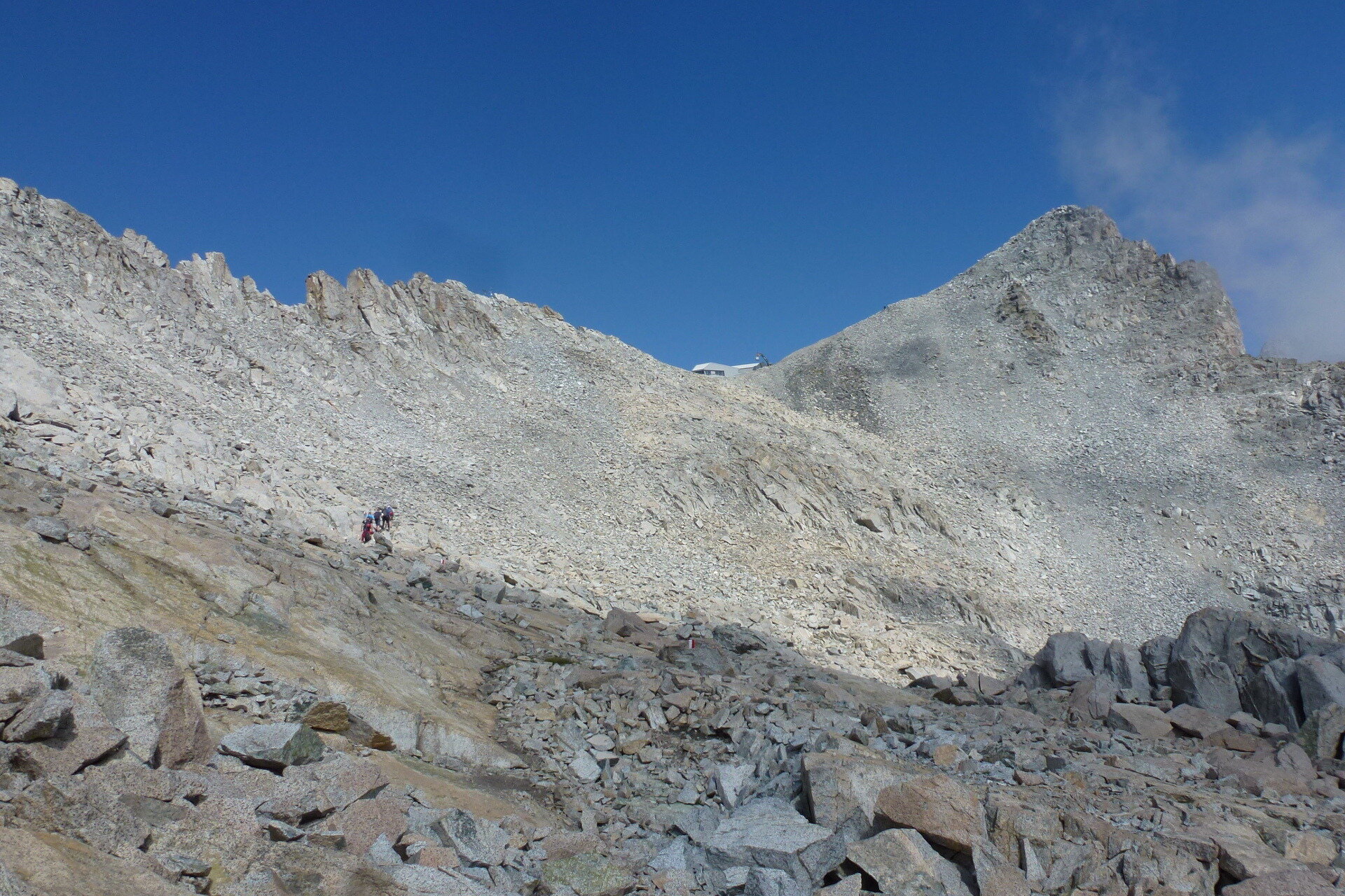 Da qui il percorso continua su una lieve pendenza e poi in salita fino a raggiungere il punto più alto, il «Corno di Lagoscuro» (3.160m), dove si trova la «Capanna Lagoscuro», un rifugio non presidiato aperto solo occasionalmente. Ora il percorso scende verso Passo Lagoscuro (2.970m), dove termina la «Via ferrata». Durante la Grande Guerra questo era il sito di un villaggio militare, di cui sono tuttora visibili alcune tracce. Da qui, la strada conduce al SAT 209 che sale a Passo Presena (2.997m), e il ritorno a Passo Tonale tramite la cabinovia.