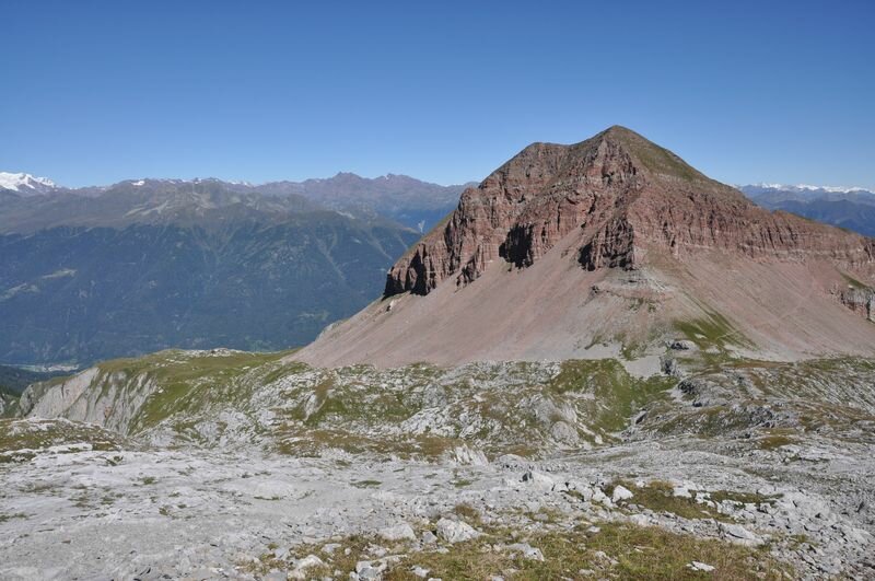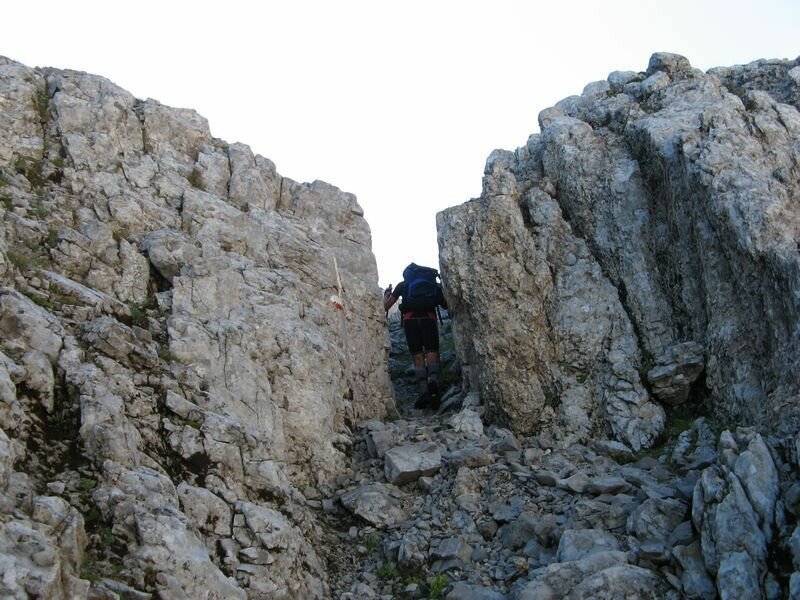 Con il sentiero si passa a destra di detto sperone e con comodo percorso si guadagna quota passando sul versante ovest dei pendii tra la cima Benon e quota 2653m (lo sperone roccioso).
