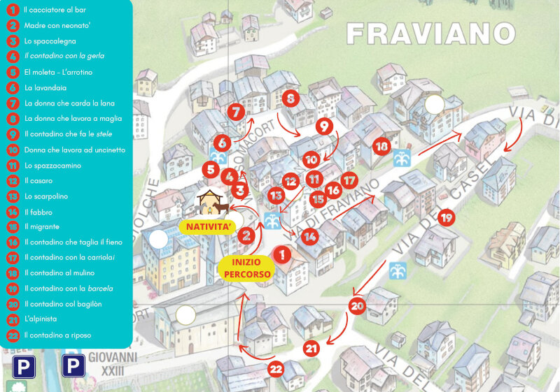 A partire dall'8 dicembre Vermiglio viene avvolto da una magia, tra le vie di Fraviano è possibile ammirare più di 30 omini di fieno a grandezza naturale raffiguranti le arti ed i mestieri di un tempo. Le installazioni sono visibili lungo un percorso ad anello con la natività posta in una vera stalla. Tra i personaggi si possono vedere la Sacra Famiglia, il fabbro, il casaro, lo spazzacamino, il contadino che porta il latte al caseificio, donne che lavorano a maglia, l’emigrante (Vermiglio ha visto molti abitanti emigrare), lo scarpolino, il contadino che taglia il fieno con la «macchina del zot», lo spaccalegna, l'alpinista, la lavandaia e tante altre figure. Gli omini sono visitabili gratuitamente tutti i giorni fino al 7 gennaio 2024. Il percorso è illuminato dalle 17:00 alle 23:00.