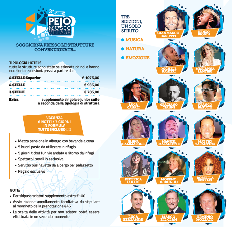 Per tutte le info seguici sui nostri canali social e sul profilo instagram dell'evento @PejoMusicVillage