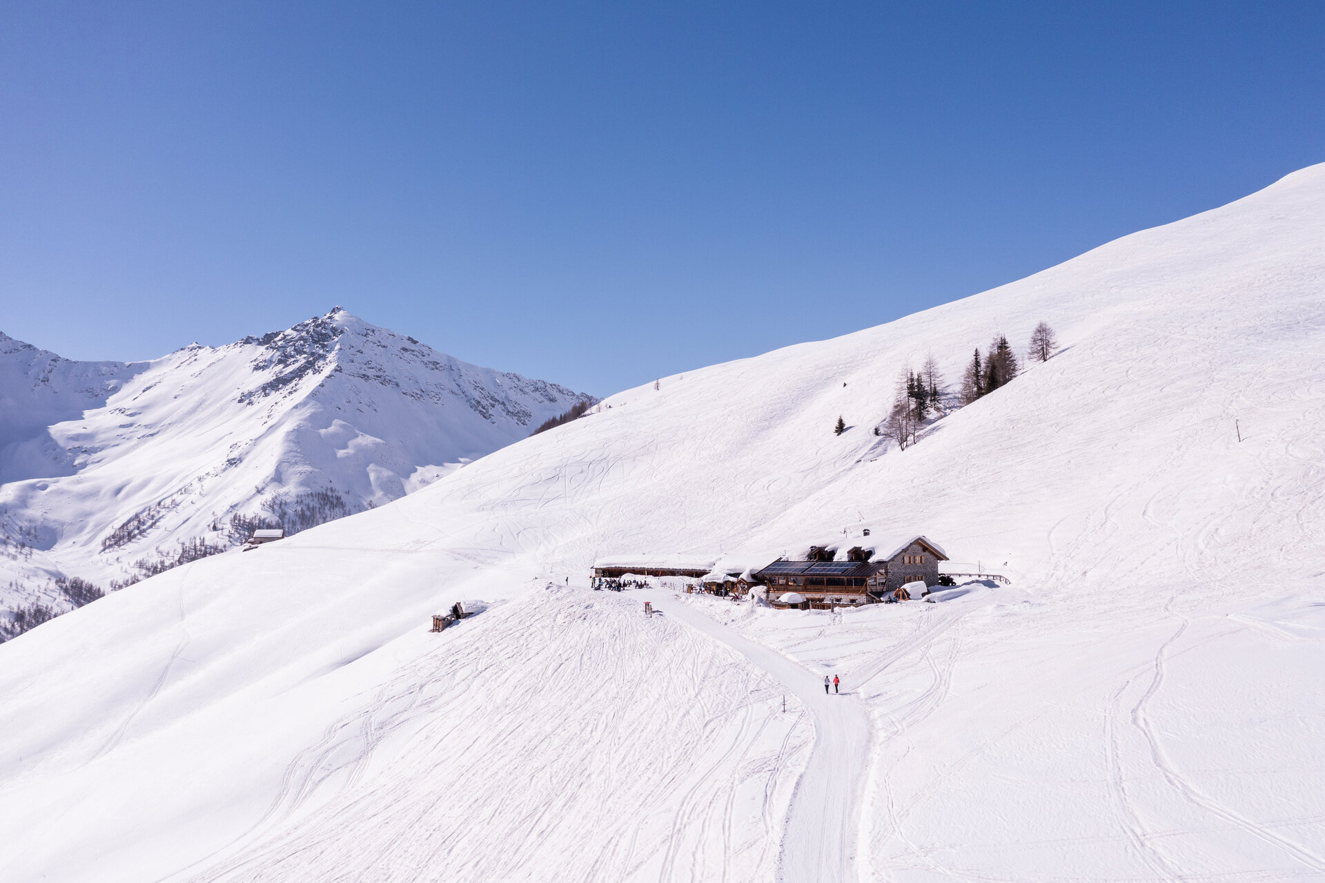 La discesa sarà parzialmente in fuoripista con possibilità di percorrere tratti di strada battuta.